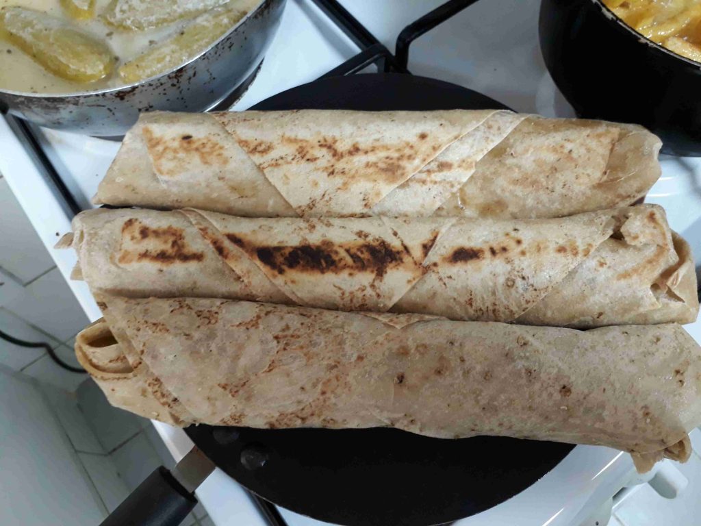 بجيب خبز شراك وبقطعه أرباع وبحط كل ربعين
