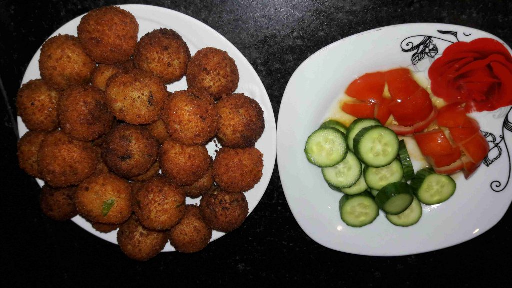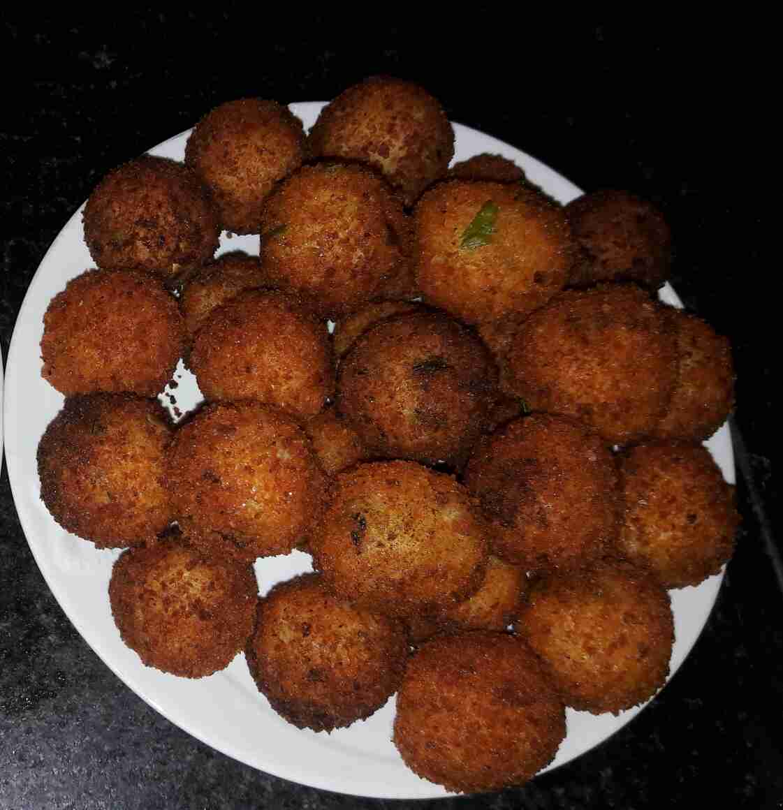 5. نشكل البطاطا إلى كرات ونضعها في البيض ثم البقسماط وتوضع في الثلاجة مرة اخرى