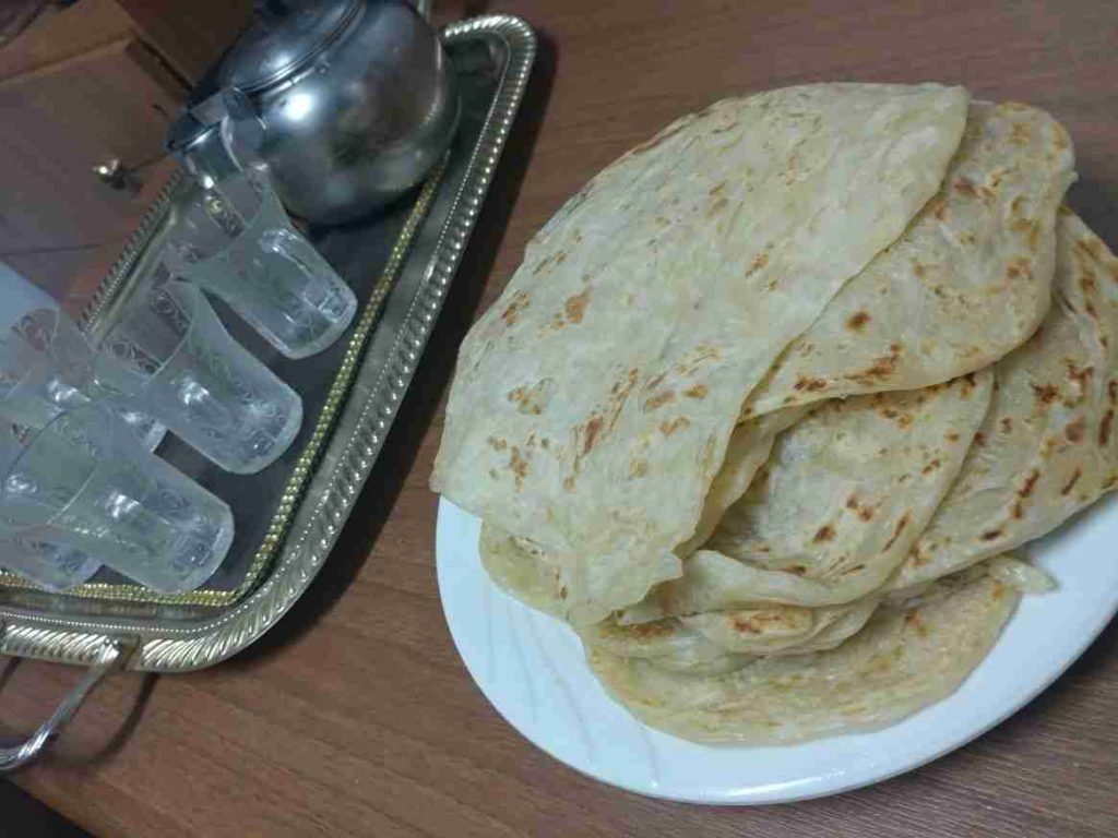 نضع في وعاء طحين + رشة ملح + 3 ملاعق كبيره سكر + ماء دافئ …. نعجنهم معا جيدا ( بتكون رخوه شوي ) ونتركها لترتاح نصف ساعه بعد ذلك نكورها كرات وتترك ربع ساعه بعد ذلك تُفرد و تُدهن بزيت مخلوط سمنه وتُلف متل الحلزون وتُترك ربع ساعه بعد ذلك تفرد وتُقلى بمقلاة تيفال مدهونه سمنه
