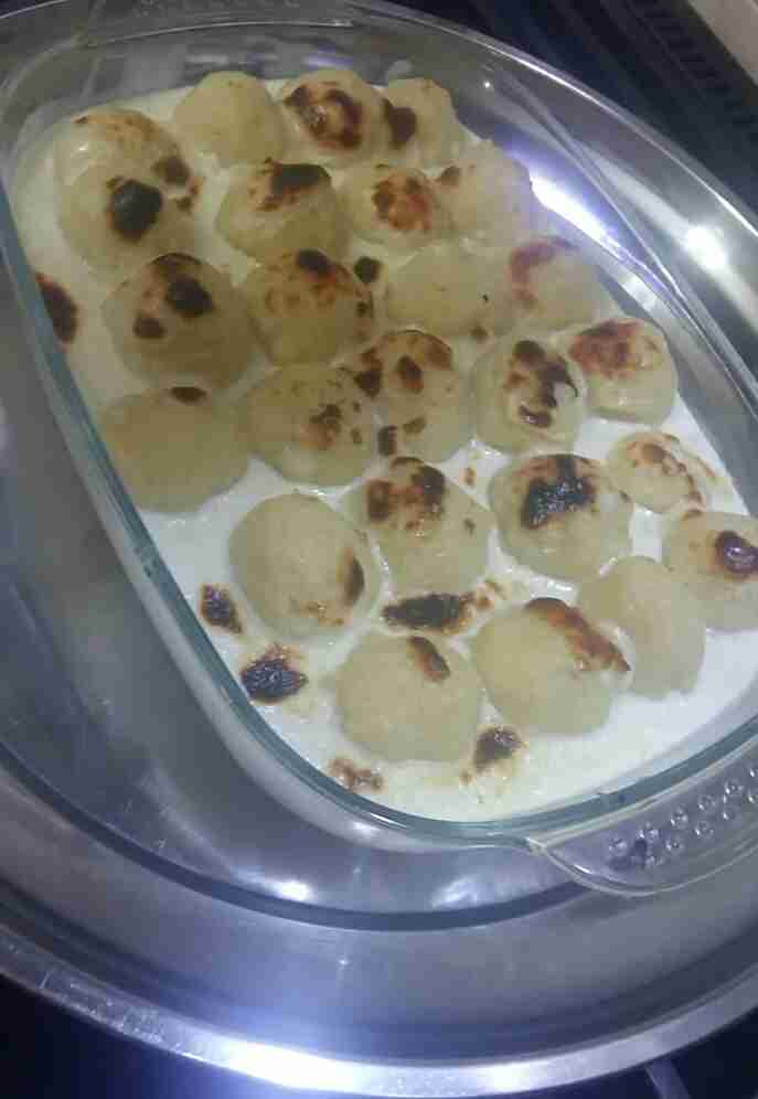 الكريمه وبرش جبنه موزريلا وبدخلها عالفرن شوي