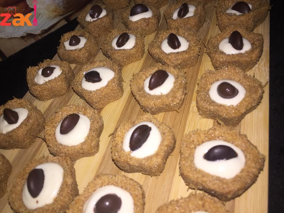 ممكن تعمليه بقوالب السلكون او شكليه بقاب الثلج وبعدين اعملي فتحة داخل كل حبة بالاصبع او بطرف الملعقة