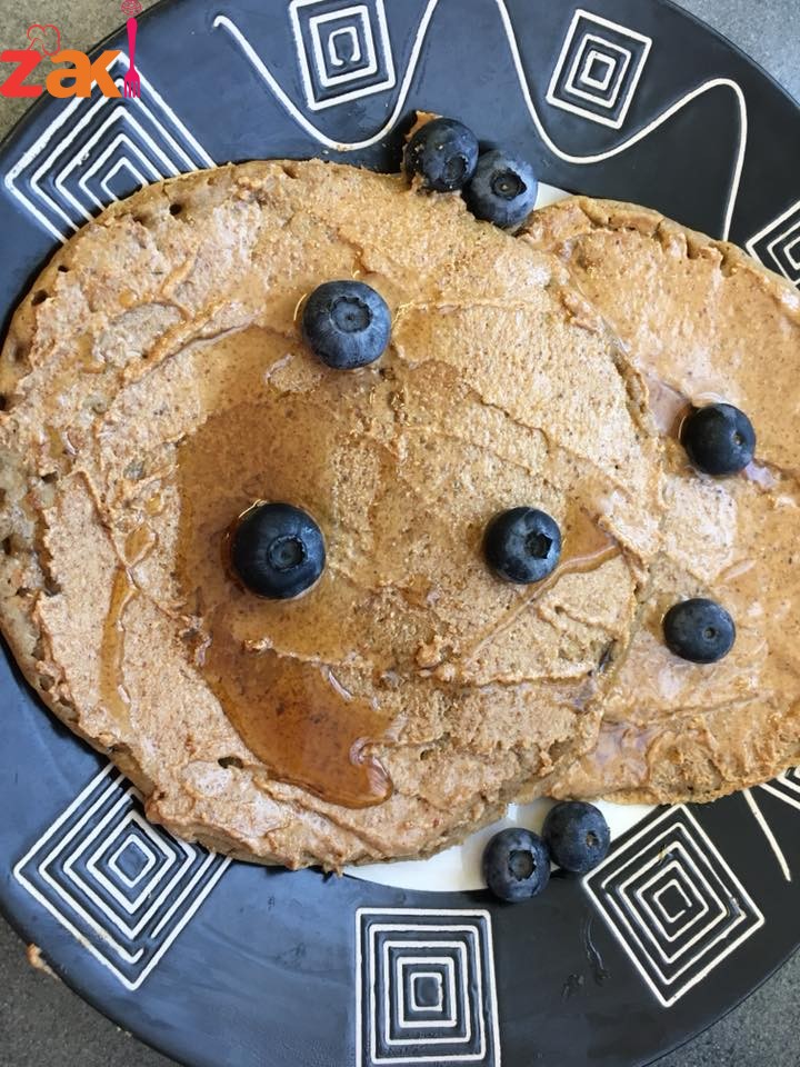 طحنت الشوفان بمطحنة البهارات وضفت عليهن معلقة صغيرة محلب او قرفة. ورشة ملح وبيكنغ باودر وبيكنغ صودا. كوب حليب اللوز ضفت له معلقة خل او عصير حامض وحركتن وتركتن عشر دقائق صاروا متل اللبن. خلطتن مع الشوفان وضفت لهم موزة مهروسة منيح وفانيليا ومابل سيروب او عسل. وخلطتن كتير منيح.