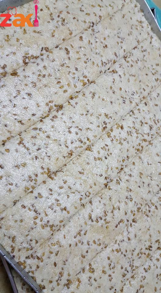 وبنمدها بصنية وينقطعها وعلى الفرن بحرارة وسط وبس تستوي بندهن وجها سمنة وبنضيف القطر