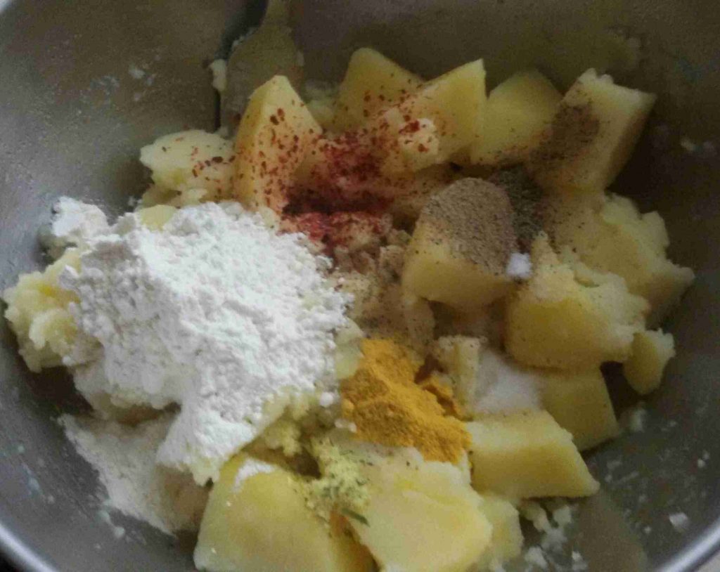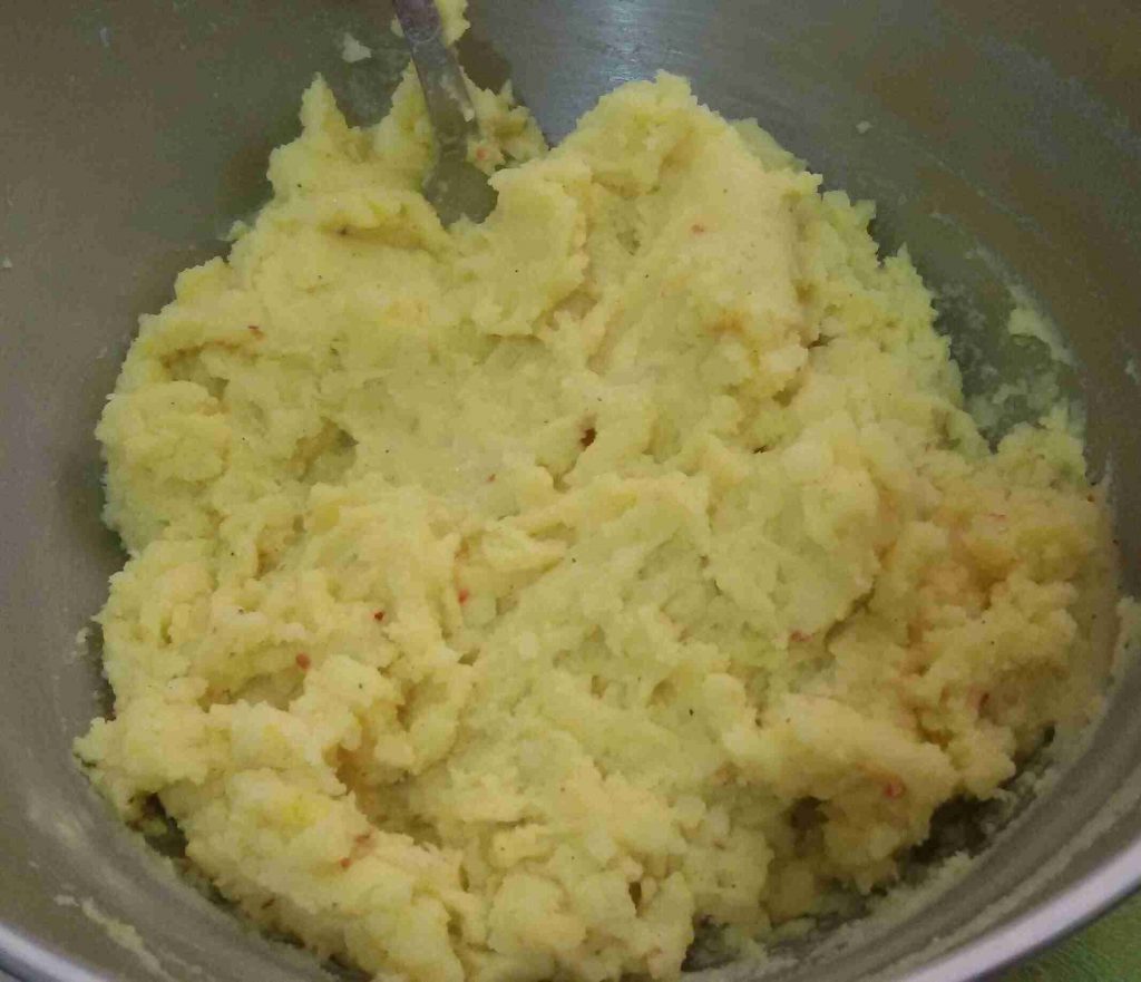 ♡لخليط البطاطا منسلق البطاطا ومنهرسها هية وسخنة اسهل ومنضيف عليها معلقة الزبدة والبهارات والطحين ومنخلطهم ليمتزجو منيح