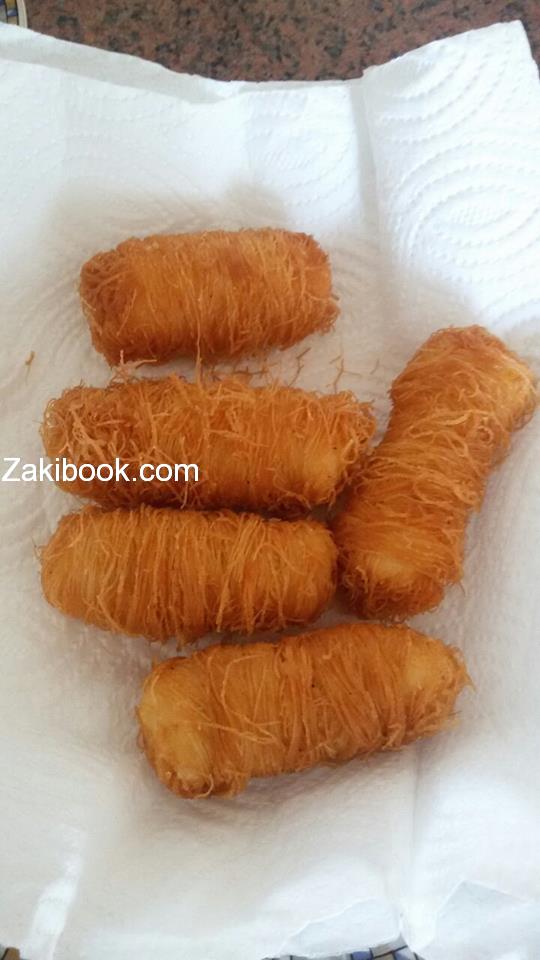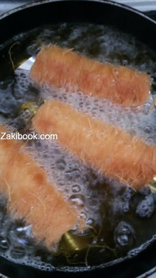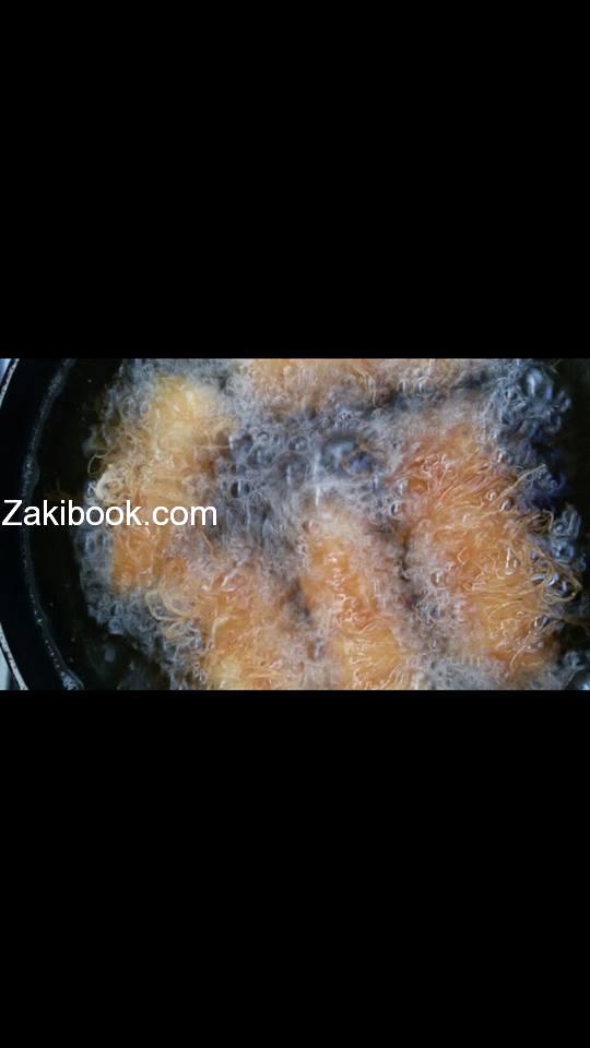 – تلف علي الاصبع الكبير وبعدها تقلي في الزيت وتحطيها شوية عالمناديل.