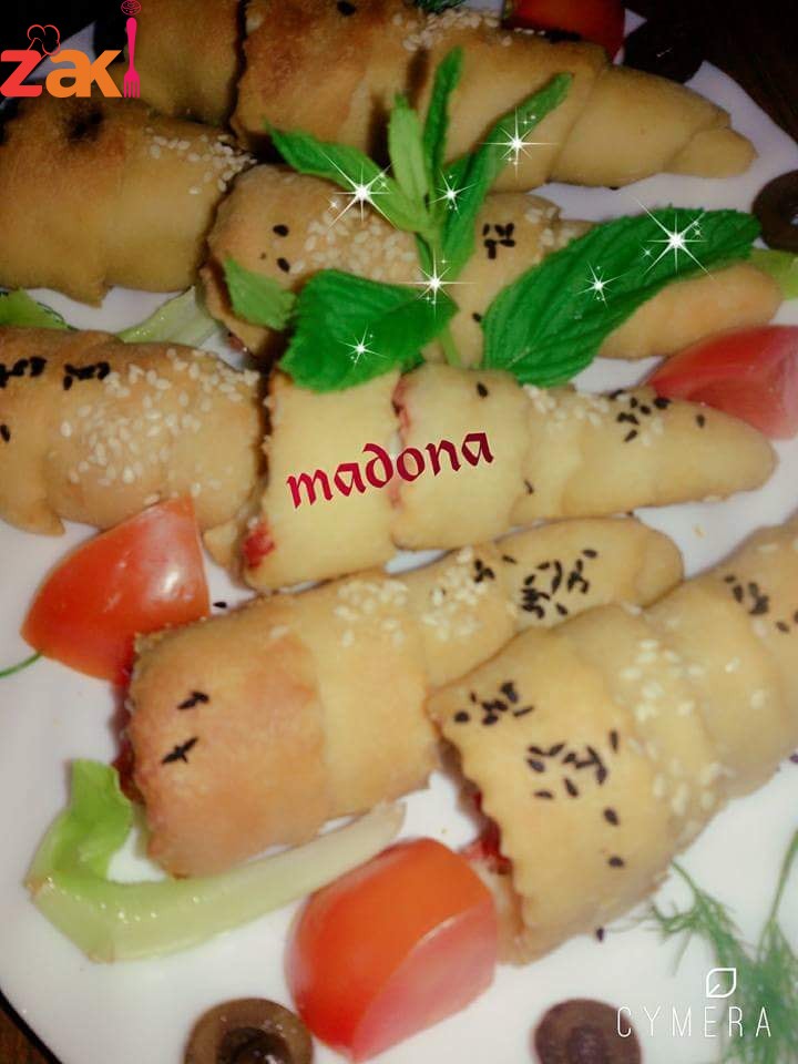تفرد العجينة..وتقسم عاشكل شرائط بالطول … وتلف عاقطع الكورنيه ..وتترك نص ساعه لتتخمر ..وبعدها تدهن بالزيت ..
