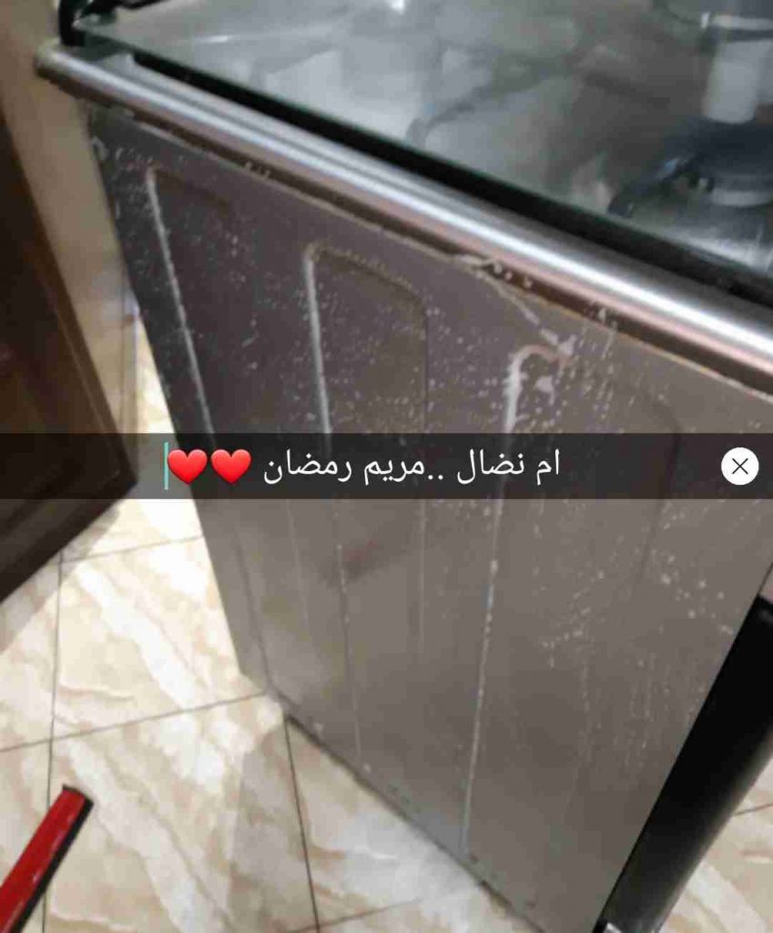 بعدين بليف السطح بسائل جلي وبمسحه بفوطة مبلولة وبعدين فوطة ناشفة وبعدين بلمع السطح بالايزي اللي هو ملمع الزجاج . وكذلك غطا الغاز