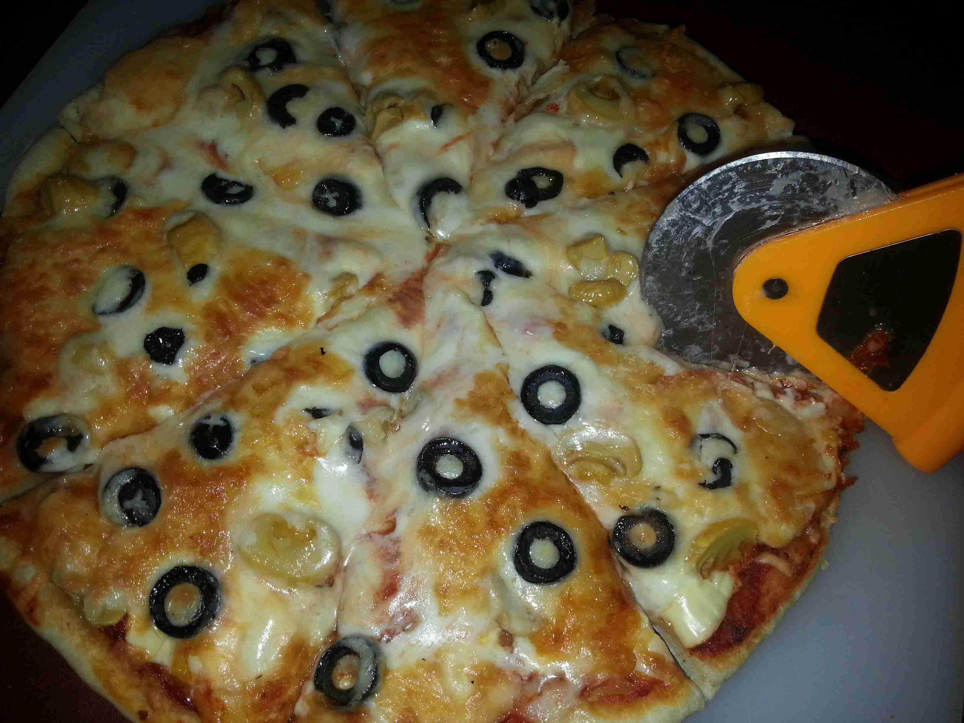 بعد ما تتخمر بنحط الصلصه والسلايسي والزيتون والفطر وبس تنضج من تحت بنحطلها موزريلا وقشقوان وبنحمرها