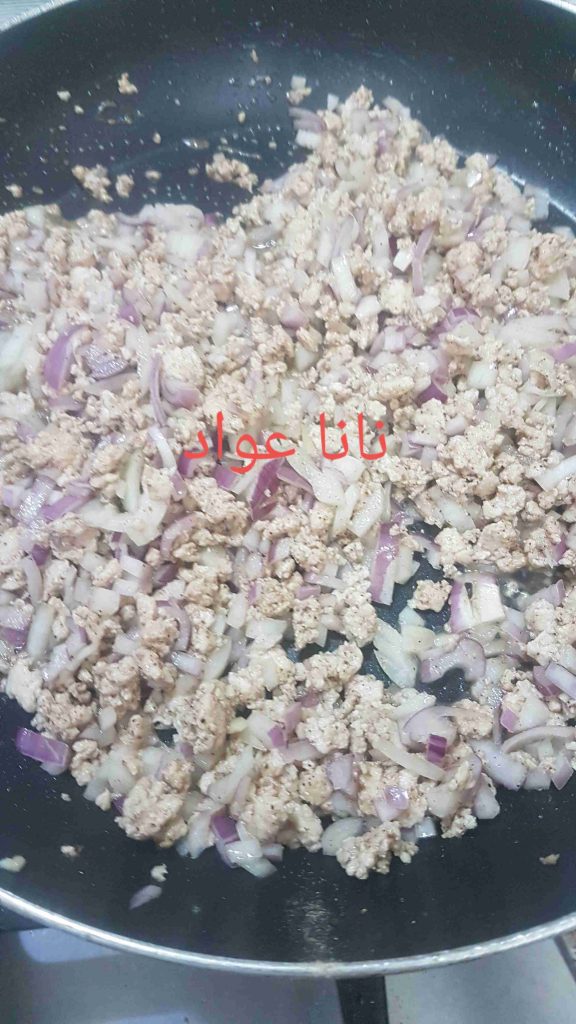 بمقلاه كبيره نضع قليل من الزيت ونقلب الدجاج جيدا مع قليل من الملح الى ان تنشف المي عنه