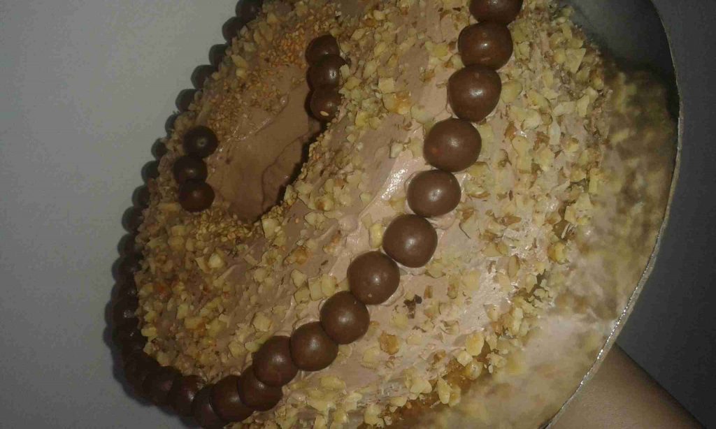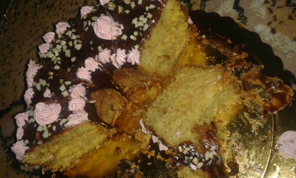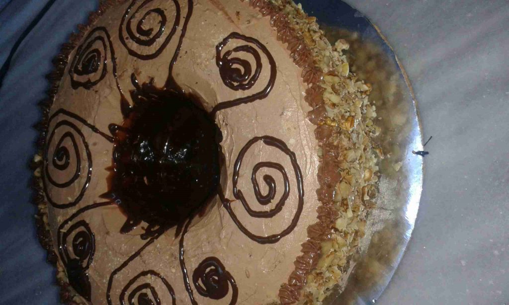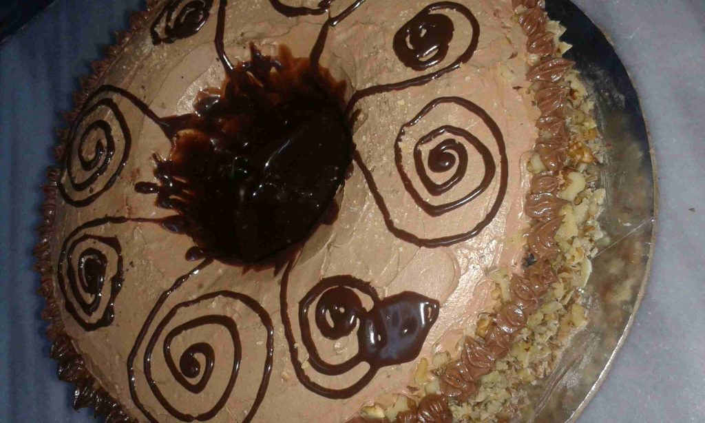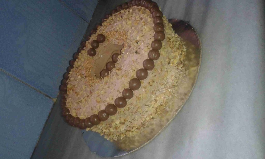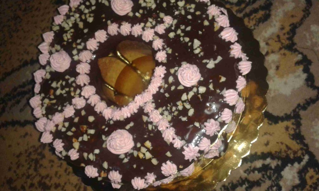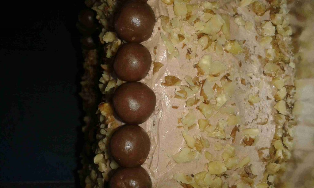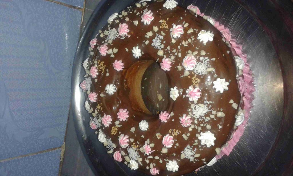 ادهن القالب بالزيت والرشه طحين واضع الخليط في القالب نكون مسخنين الفرن على درجة حرارة 180 طبعاً لازم نكون مسخنين الفرن قبل نص ساعه نضع القالب في الفرن بالرف الوسط (وهاي أهم نقطه لازم ما نفتح على الكيك ابدا إلا بعد مرور نصف ساعه مشان الكيك ما يهبط ) وبعد النص ساعه انتي شوفيه ونحمر وجهه من فوق والف صحه وهنا وبالنسبة لتزيين الكيك على حسب ذوقك انا زينتهم زي ما انتم شايفين بالصور بالشوكلاته والكريمه والجوز .