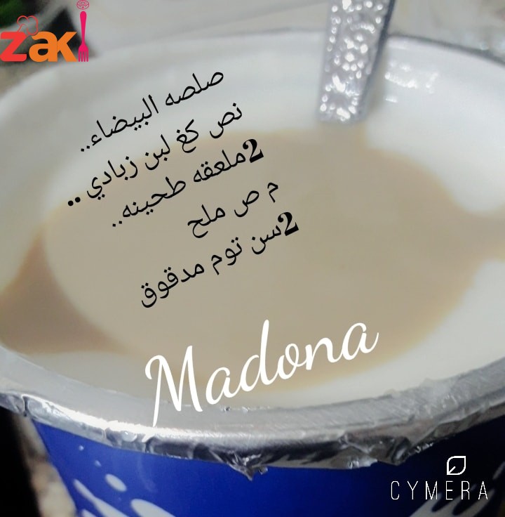 نضيف للبن الزبادي الطحينة مع رشة ملح و الثوم مدقوق و نخلطها جيدا