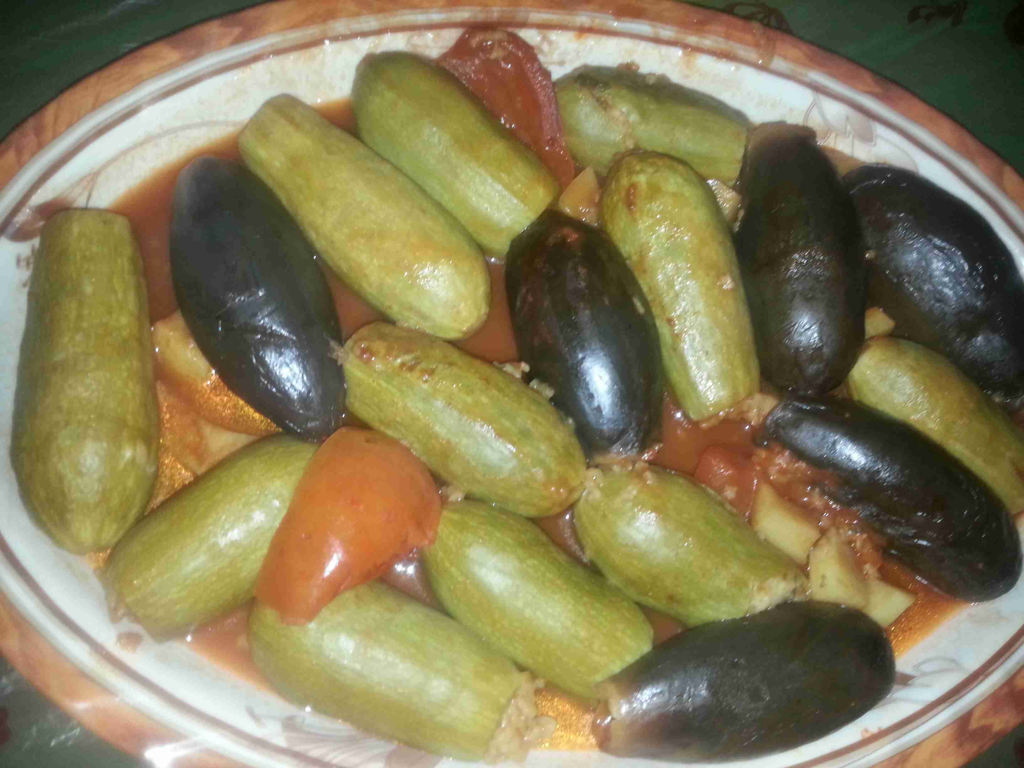 نخلط الارز واللحمه والبهارات والملح والفلفل والكمون والبقدونس المفروم والزيت والنعنع الناشف وبنحشي الكوسا الباذنجان وبنطبخهم بعصير البندوره والصلصل