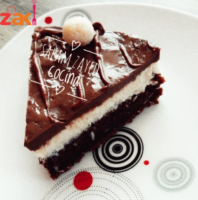 بدمج كل المكونات سوا عالبارد وبعد هيك بحطها عنار هادية مع التحريك المستمر لاحصل عقوام ثقيل لكن مو جامد متل المهلبية وبصبه مباشرة وهو ساخن فوق طبقة جوز الهند بترك الكيكة تبرد بحرارة الغرفة وبعد هيك بدخلها لتبرد تماما وتتماسك وبزينها بالشكولاته وكرات جوز الهند(عملت الكرات من مكونات الطبقة التانية)وصحتين وهنا