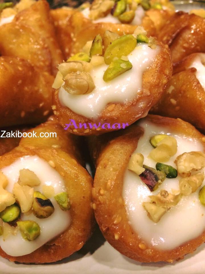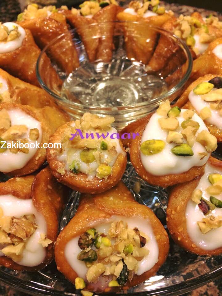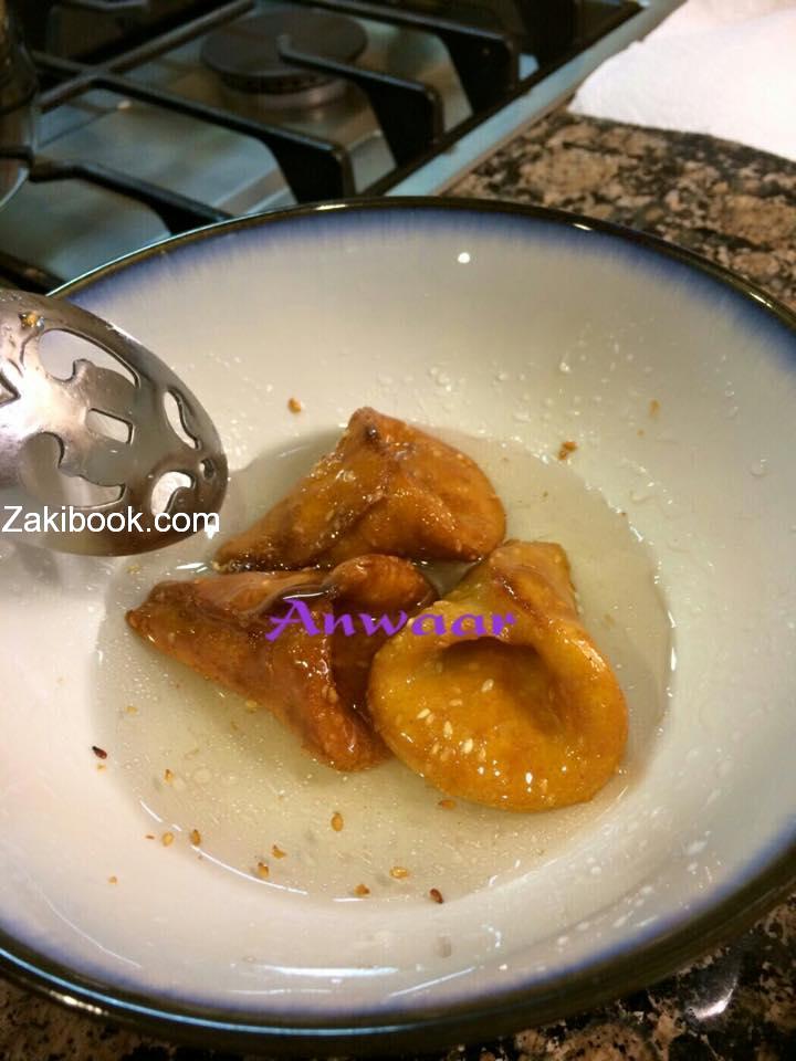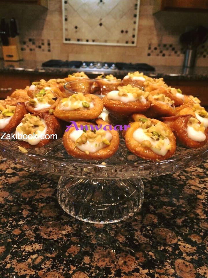 – بعد الأنتهاء من العجينة تقلى بزيت نباتي على نار متوسطة وبمجرد احمرارها تخرج وتوضع في القطر مباشرةً لثواني فقط ومن ثم نضعها جانباً لتبرد ومن ثم نحشيها بالقشطة الي نكون محضريها ومبرديها مسبقاً ومن ثم يوضع الفستق فوق القشطة وتصف في صحن تقديم مع قطر اظافي حسب الرغبة.