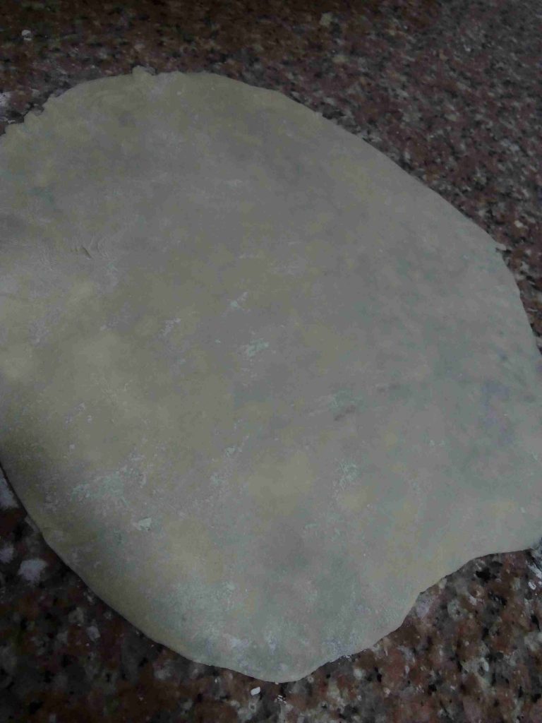 # بنفرد قطعة العجين بالشوبك او النشابة بمساعدة النشا لحتى تصير شفافة العجينة وبنحشيها .