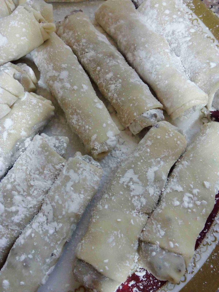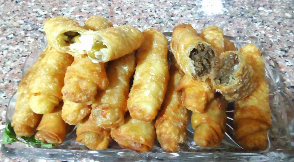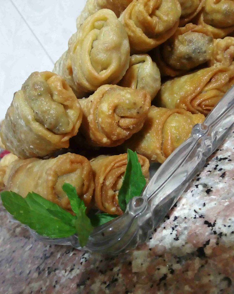 • الحشوة حسب الذوق.. استخدمت لحمة مقلية مع بصل.. وحشوة جبنة بيضاء مع زيتون اخضر.