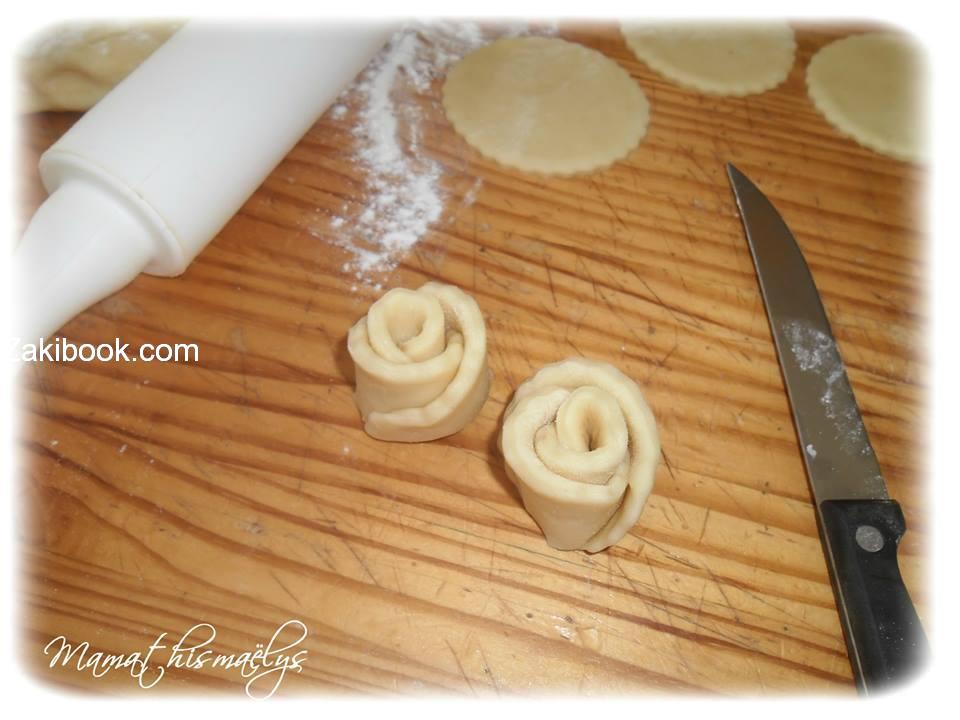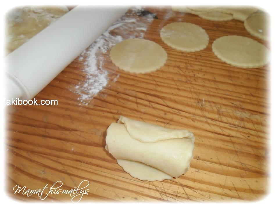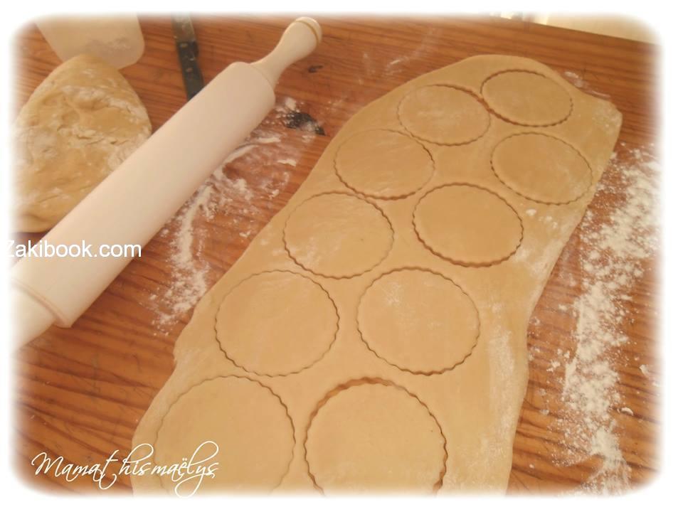 رقي العجينة وقطعيها بطرق الكباية أو أي شي دائري عند كما في الشكل.