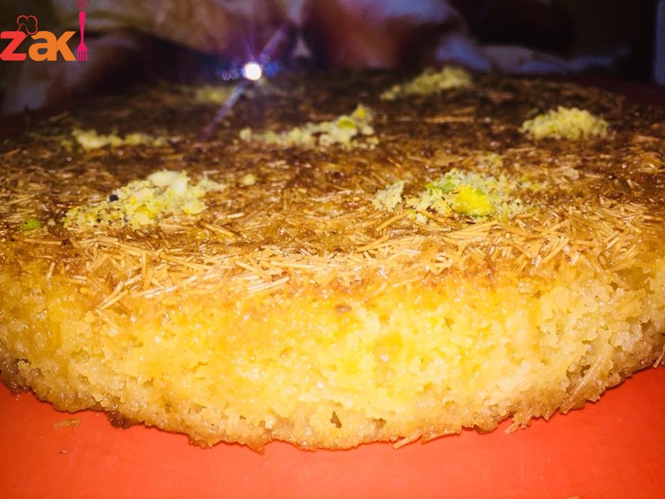 هنا عملت الها طبقة من الشعرية الباكستانية تحتها يعني دهنت الصنية زيت اكويس وبعدين كسرت الشعرية تكسير وسط وبعدها صبية البسبوسة عليها ولمن خبزتها قلبتها وسقيتها بالقطر ورجعت غطيتها بنفس الصنية منشان تتشرب اشوي