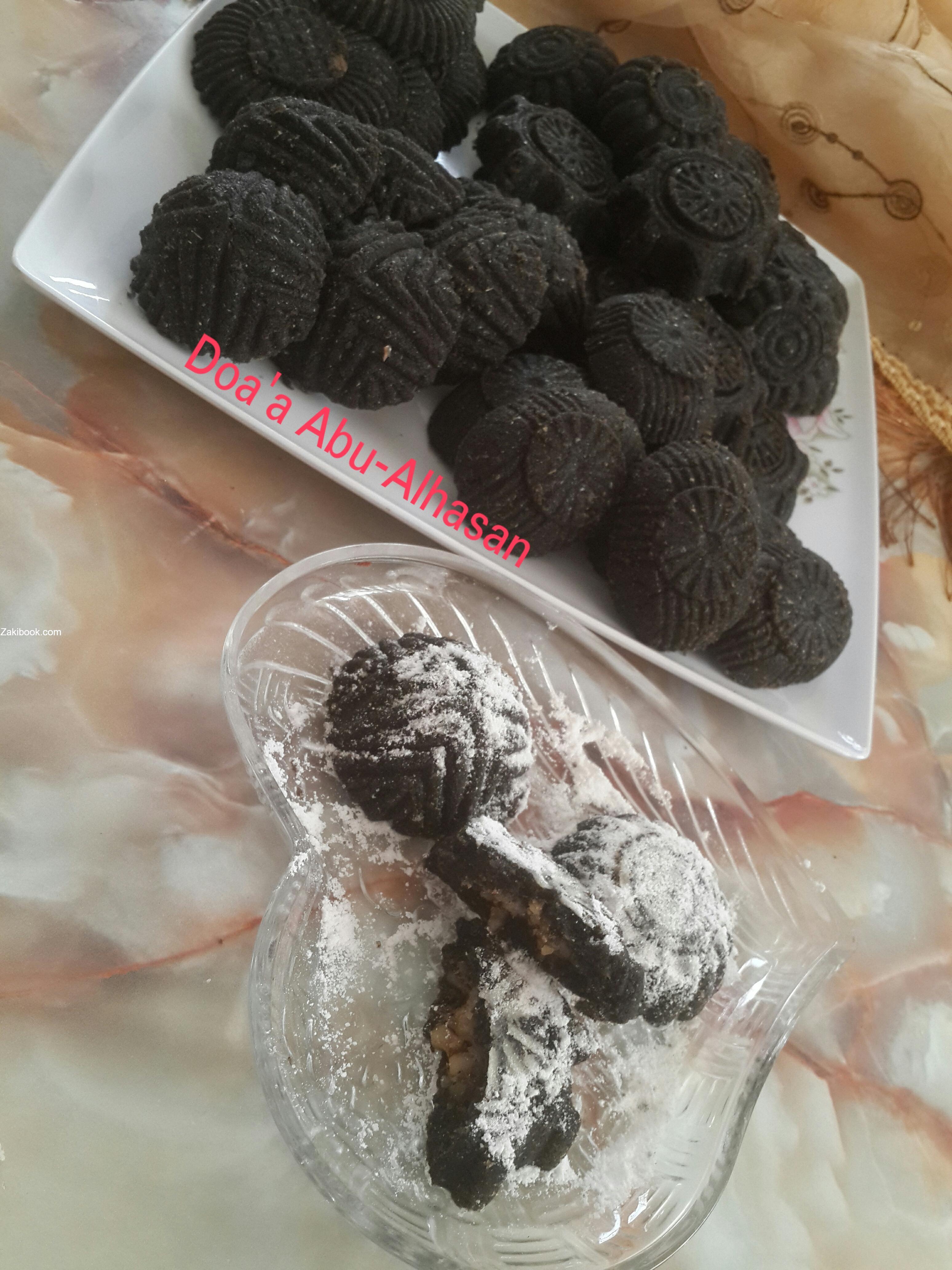 وصفة خارجة عن المألوف حيث تعودنا معمول و كعك العيد أبيض بلون ذهبي لكن هنا معمول بلون أسود موشاة بلون الثلج الأبيض …وهو طبق فلسطيني الأصل. ..وبالطريقة المضبوطة 100 % من تحت ايدين جدتي وماما الله يخليهم. ..طعم روعة …وفكرة جديدة. ..و ضيافة فاخرة …تغير عن الروتين …….Doaa Abu_Alhasan