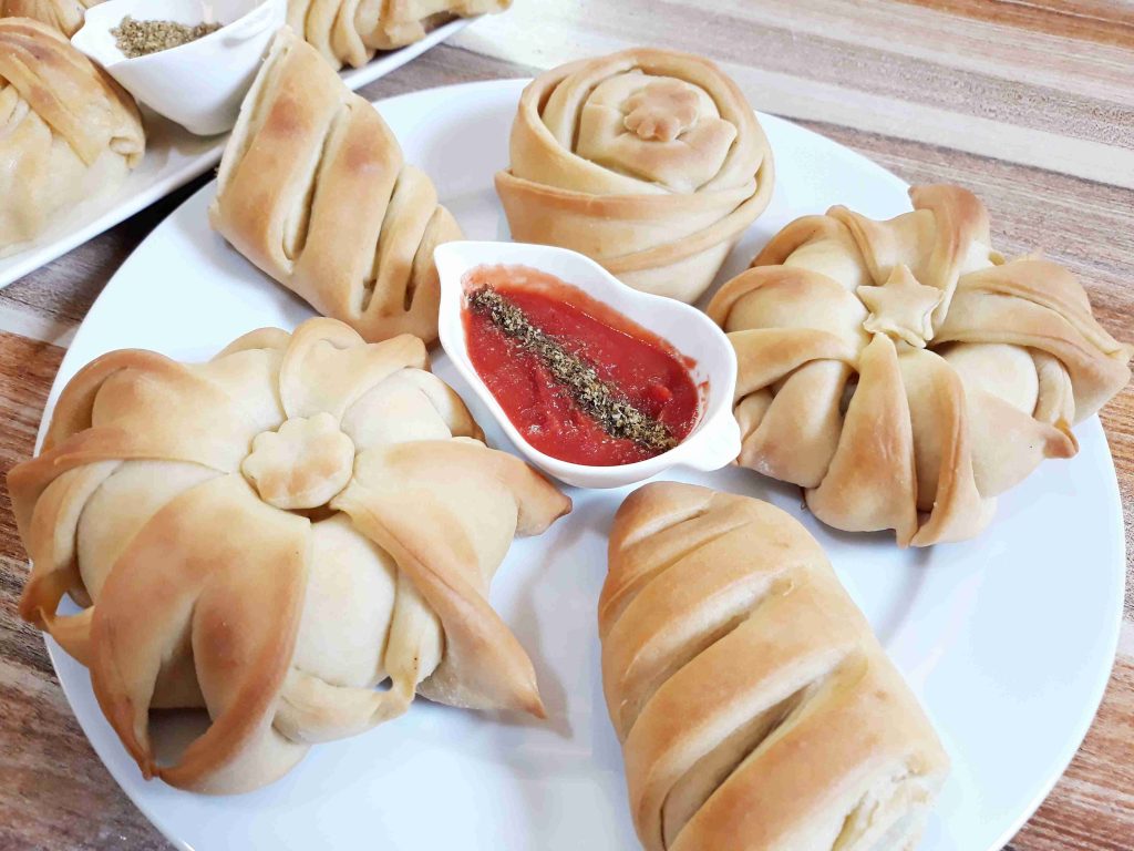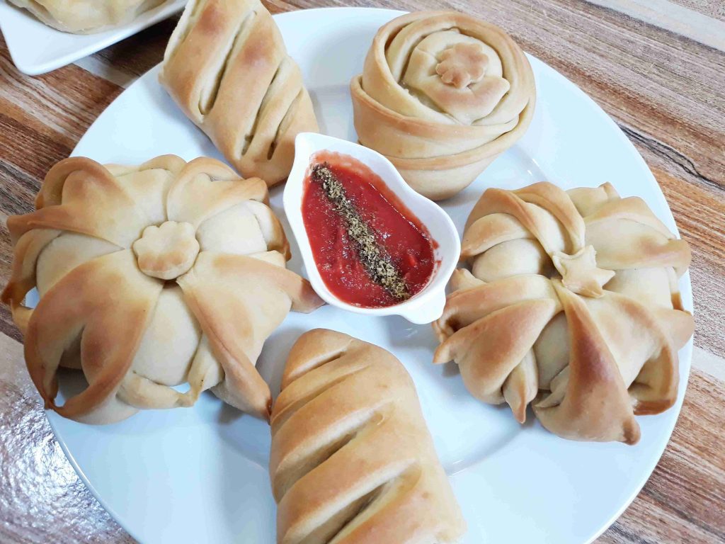 ملاحضه يمكن عملها بعده حشوات مختلفه مثل اللحمه المفرومه او الجبنه حسب الرغبه انا اعطيتكم افكار التشكيل والابداعات عليكم