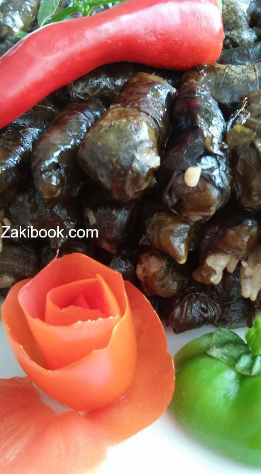 – انا استعملت ورق عنب مفرز الحشوه رز مصري مع لحمه مفرومه (نية) وبهارات وحبه طماطم مفرومه وزيت زيتون وعصره ليمون.