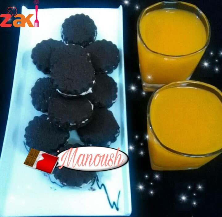 4- يوضع البسكويت في الفرن على الرف الاوسط لمدة 10 دقائق ثم يترك ليبرد ثم تحشى كل قطعتين بالكريمه المجهزة