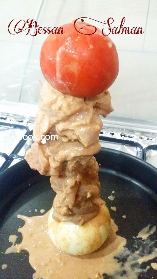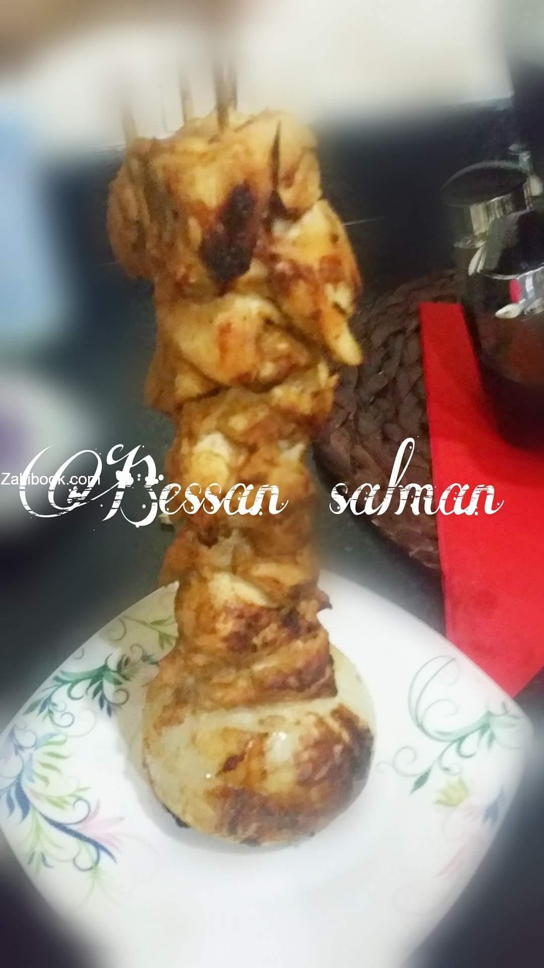 شرائح دجاج منوعة بالخلطة. …نضيف اليها الخلطة السابقة… بعد ناتي باعواد الشوي وبنركب عليهم قطع الدجاج …..وبنثبتهم بقاعدة ممكن تكون بصلة وعلى رأسها حبة بندورة وبنلفها بالقصدير وساعة بالفرن ع درجة حرارة 180 وبعدها بنفكها وبنحمرها,صحة وهنا.