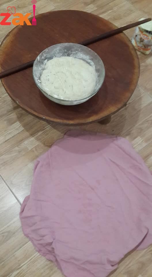 نعجنه بماء حسب الحاجة ونغطيه ببلاشتيك وغطاء في مكان دافي ساعة بعدين نخليها كرات ونجيب خشب ونفتحهم بشوبك برشة طحين ونخليها على قماش ونخليهم يرتاحو نص ساعة ونسخن على نار هادي مقلاة تفال ونحط خبز ونحركه ولما بيتحمر نقلبه لجهة تانية الف هناوشفاء ودي تنفع يستعمل مع اي شي
