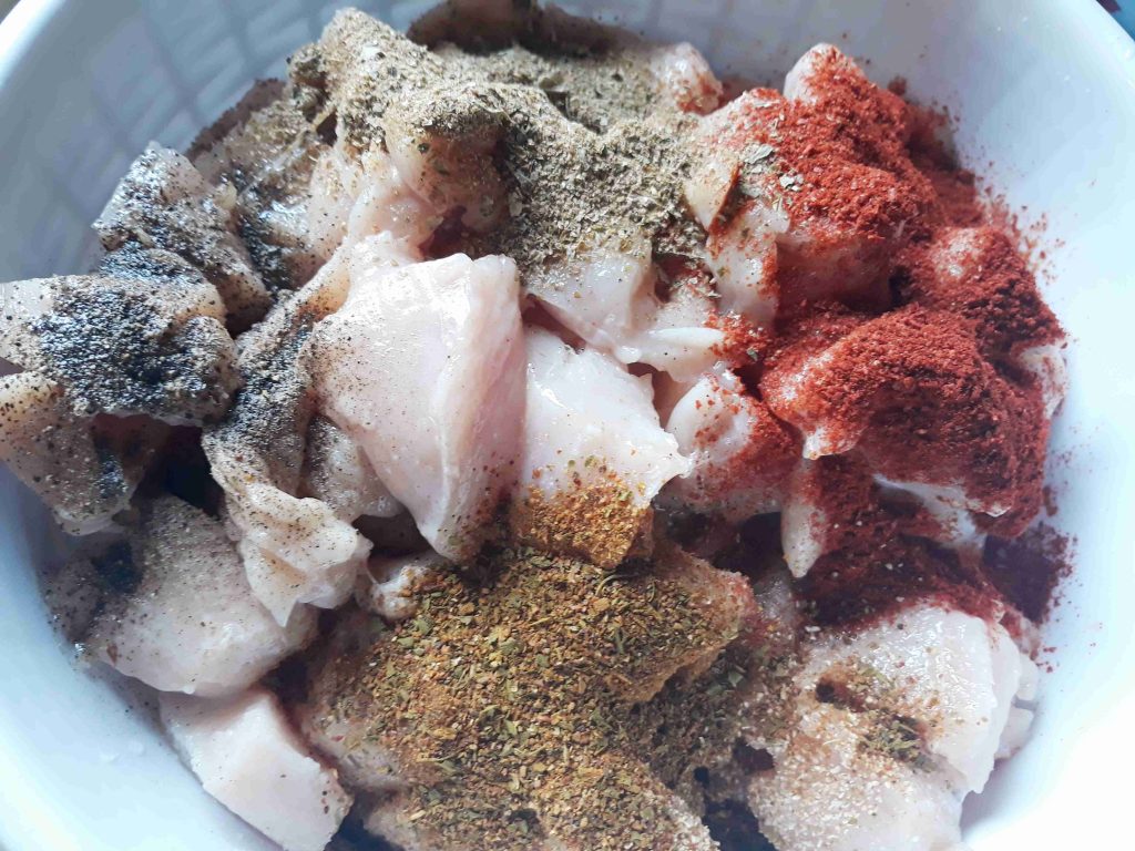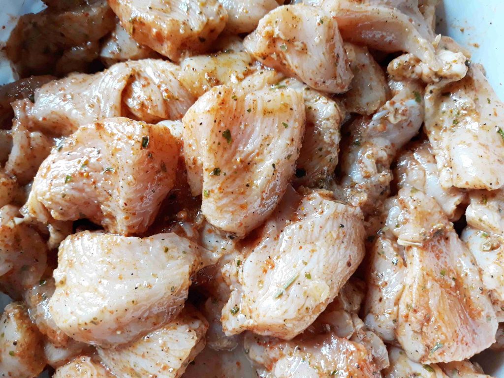 - اربع صدور دجاج منزوعين من العظم ومفرومين مربعات كبار او شرحات بالطول حسب الطلب