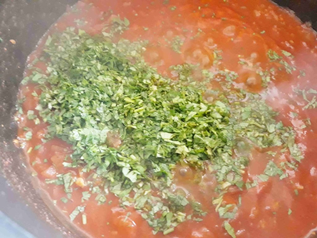بنقلي البصل والثوم والفلفل الحار بالزيت لما يتذبل بنضيف عليهم البندوره المفرومه ناعم وبنضيف التوابل والملح وبنضيف كوب مي ومعلقتين صوص البندوره وبنتركهم يغلو وبعد هيك بنضيف الكزبره الخضره المفرومه وبتركو لما يبلش يتماسك ويثقل قوم الصوص تقريبا عشرين دقيقه وبنضل نحركهم كل شوي وبس يتماسكو بنطفي الغاز و بنخليهم يبردو منيح وبنخلطهم على الخلاط وبنطحنهم وهيك بسيرو جاهزين للتقديم