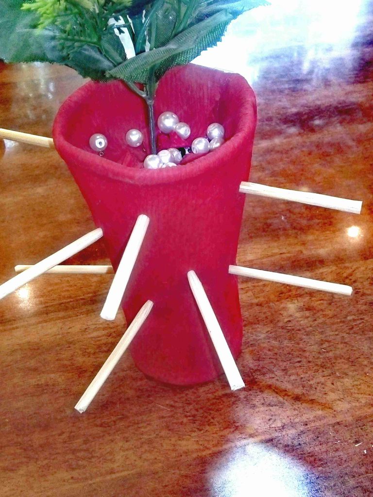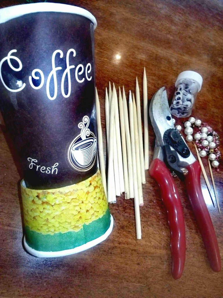 # قطعي الاعواد الخشبية للحجم المطلوب واغرزيها بالكأس من برا لتدخل بالجبس.
