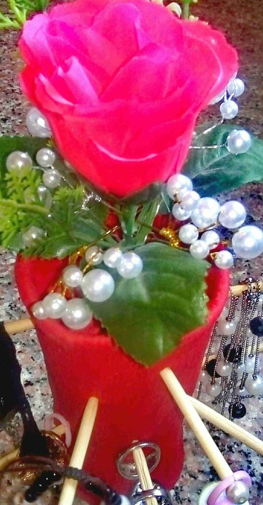 # الزقي حبات الخرز على رؤوس الاعواد للزينة.