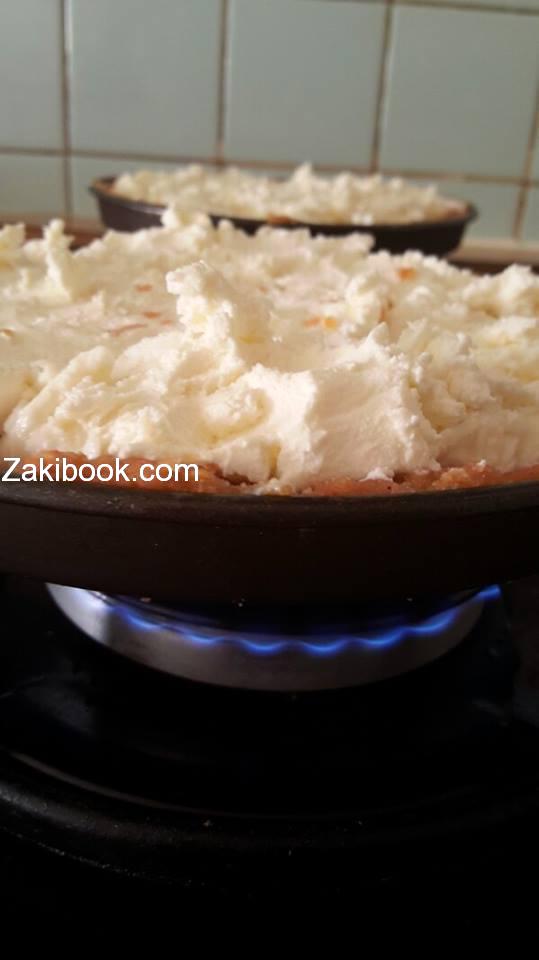 – وبعدها تاخدي قوالب صغيره او كبيره..ويفضل صغيره ..تدهنيها بشوي زبده وترصي العجينه سمك بسيط وتحطي عليها جبن موزريلا وقشطه مسكربون, وتحطي علي نار متوسطه شويه, ودخليها للفرن يادوب تتحمر, خارجيها واقلبيها, تقدم ساخنه مع العسل الطبيعي والفستق.