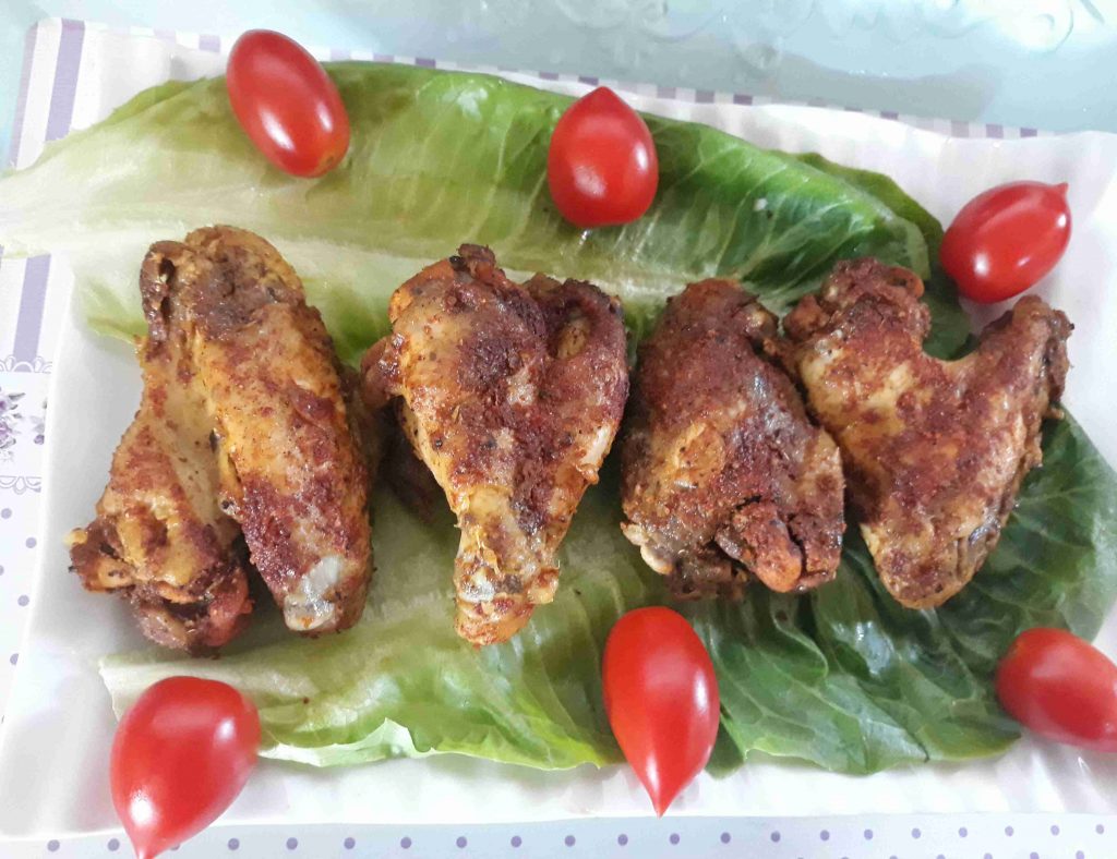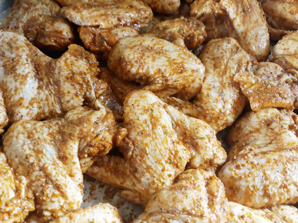 بنتبل جميع المكونات مع بعض وبنتركهم ساعتين وبعد هيك بنصفهم على صينيه الفرن وبندير جميع بواقي الصلصه عليهم وبنرش رشه خفيفه من الفابريكا الحلوه على الوجه وبنضيف كوب مي على جنب الصينيه منشان نحافظ على التوابل مغطيين الاجنحه وبنلف الصينيه بورق القصدير وبنحطها بفرن حامي مسبقاا على ردجه 180 لمده ساعه الا ربع تقريبا على حسب الفرن والف صحه وهنا