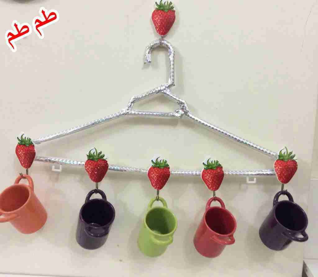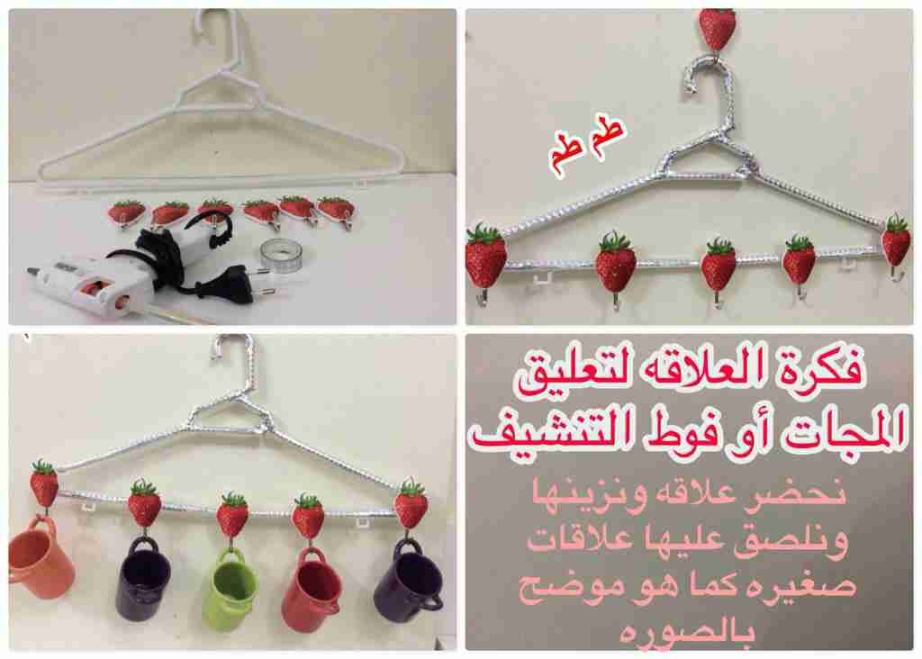والفكره الثانيه ايضا بسيطه وسهله عباره علاقه مزينه وملصق عليها علاقات صغيره لتعليق مجات النسكافيه او الكاسات او فوط التنشيف (البشاكير)