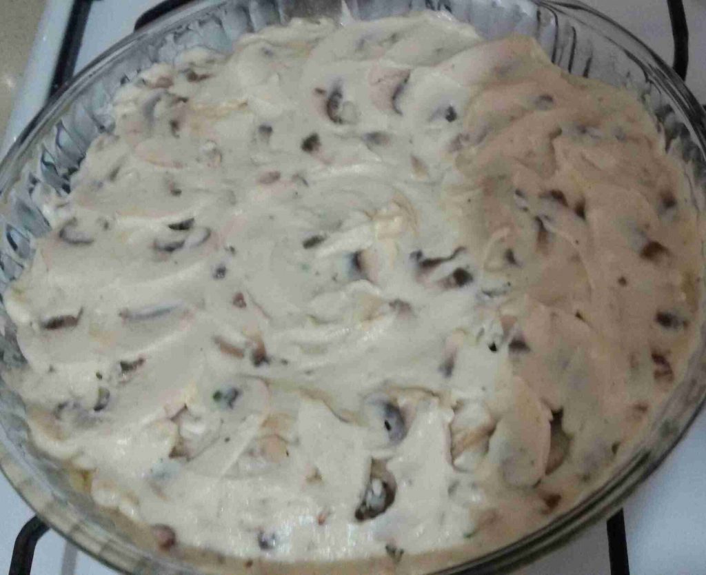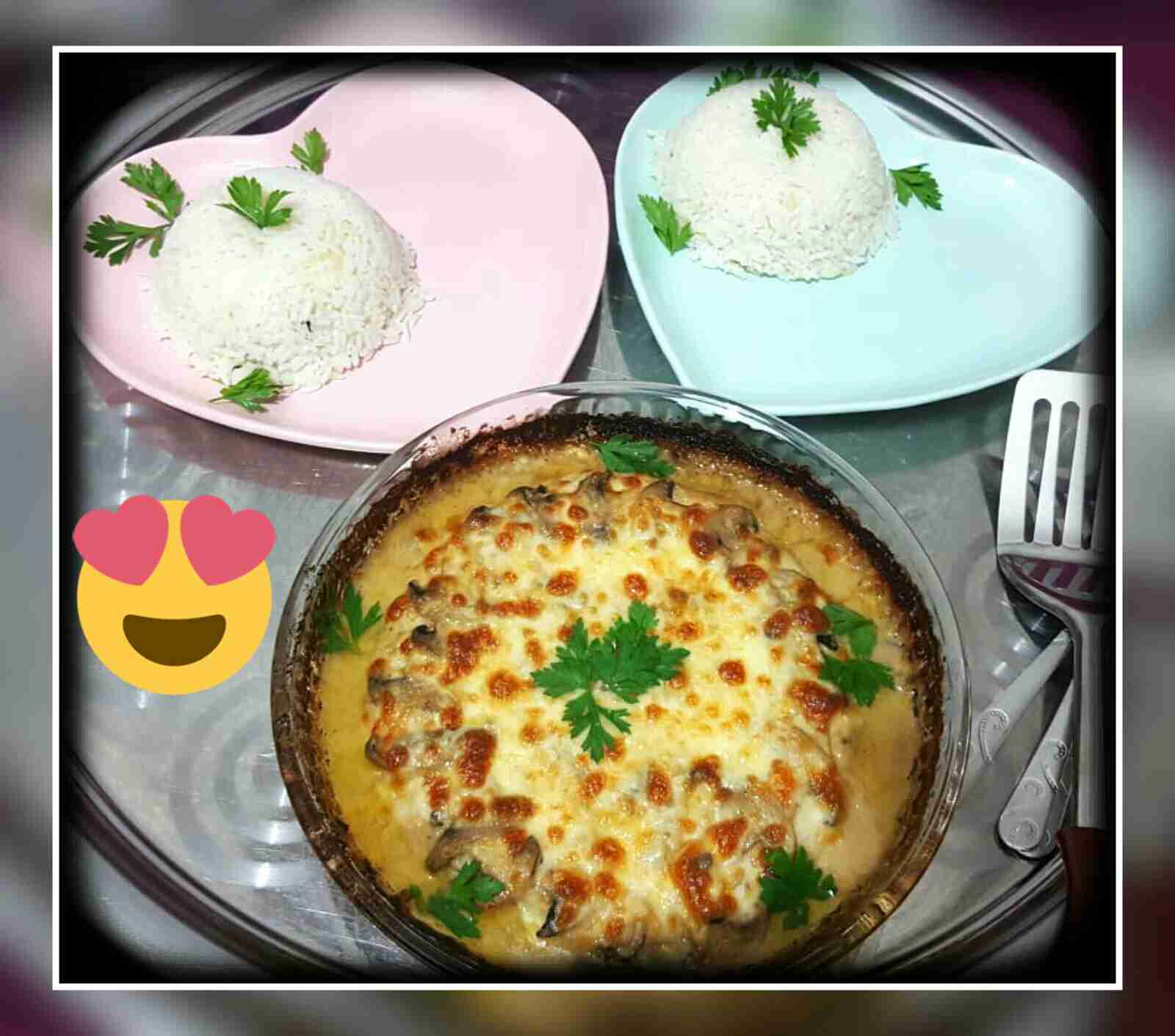 انا اخدت من هالخليط ملعقتين وفردتهم فوق خليط الجاج بعدين صفيت الفطر متل مو شايفين وضفت باقي الصوص وغطيت الجاط بالقصدير عالفرن ليستوي تماما بس انتبهو ماتقللو صوص لحتى ماينشف عالاخير لانو الجاج رح يمتص من الصوص ويقل كتير