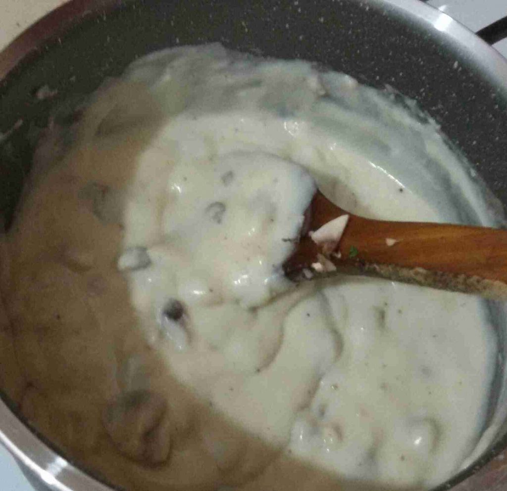 منجي للصوص منطبخ شوية بشاميل عادي مندوب الزبدة مع شوية زيت ومنحمص فيها الطحين وبعدا منضيف الحليب وبس يسمك منضيف الكريما او القشطة ومنحرهم سوا ومنضيف الفطر المقطع صغير ومنطفي