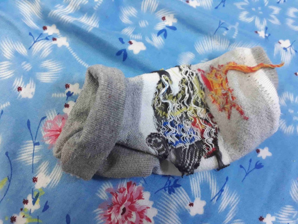 أقص الجوراب من جهة الاصابع وأطويه وأقصه قليلا من كعب الجوراب…وأخيط الفتحة ومن نلبسه نحن او اطفالنا الحلوين…..