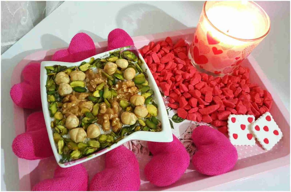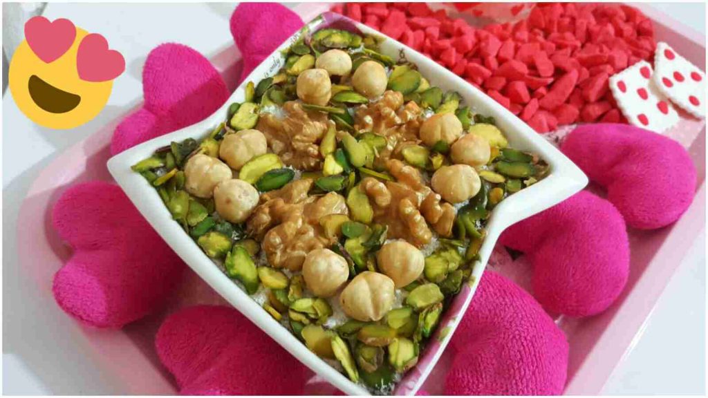 ومنزين الوش بجوز الهند والمكسرات حسب الرغبة وهنا والف عافية يارب