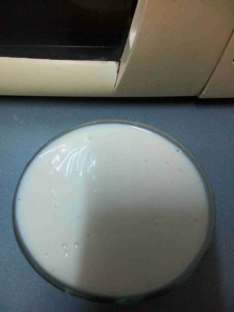 توضع جميع المقادير بالخلاط الكهربائي حتى يتم خلطها جميعا وتنعيمها وتجانسها