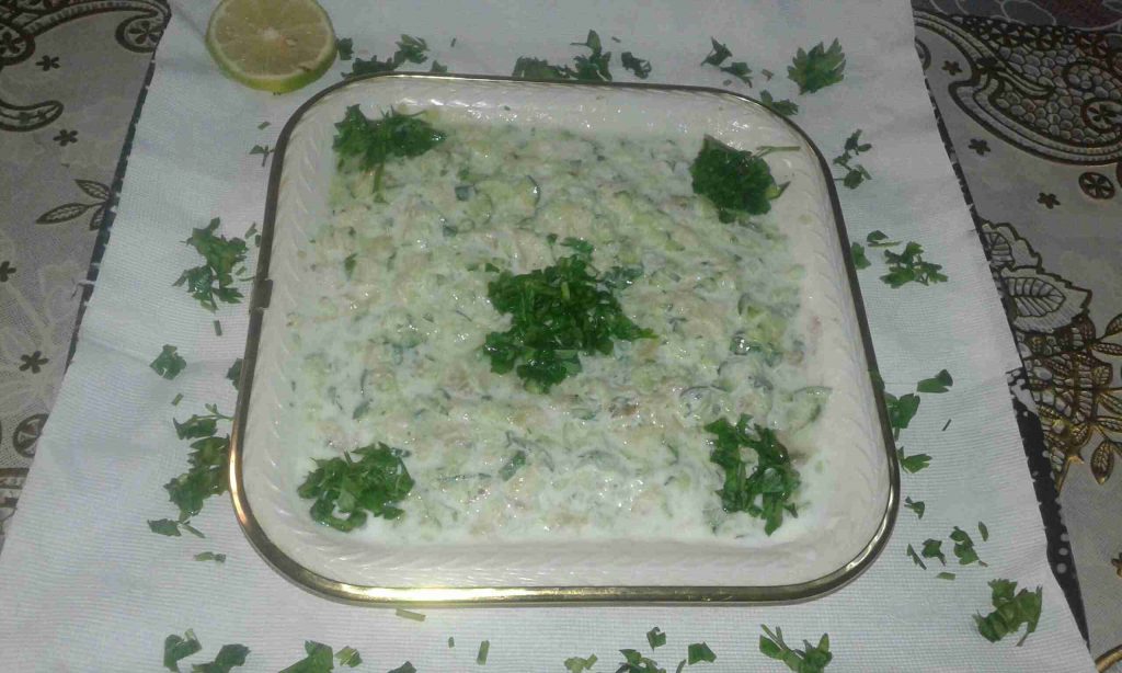 يسعد اوقاتكم يا احلى اخوات حبيت اقدمالكم هذه السلطه اللذيذه سلطة الزبادي والخيار مع الباذنجان المشوي خصوصا اذا تقدمت بارده كتير طيبه