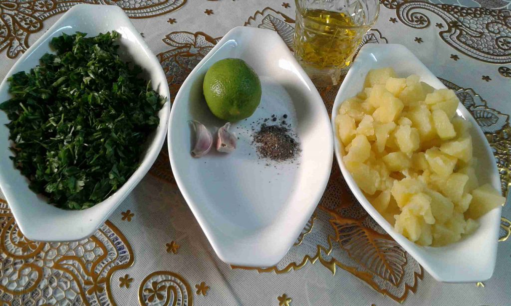 2/ البطاطا المسلوقه والمهروسه بالبقدونس او الكزبره والليمون وزيت الزيتون
