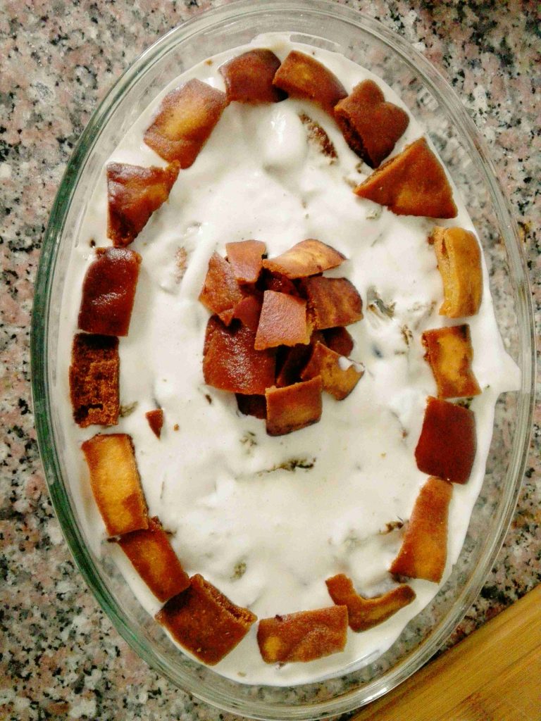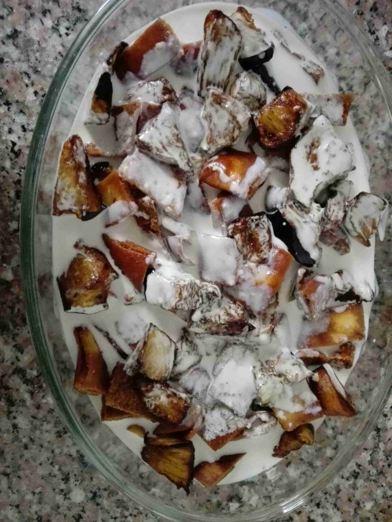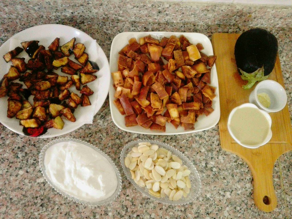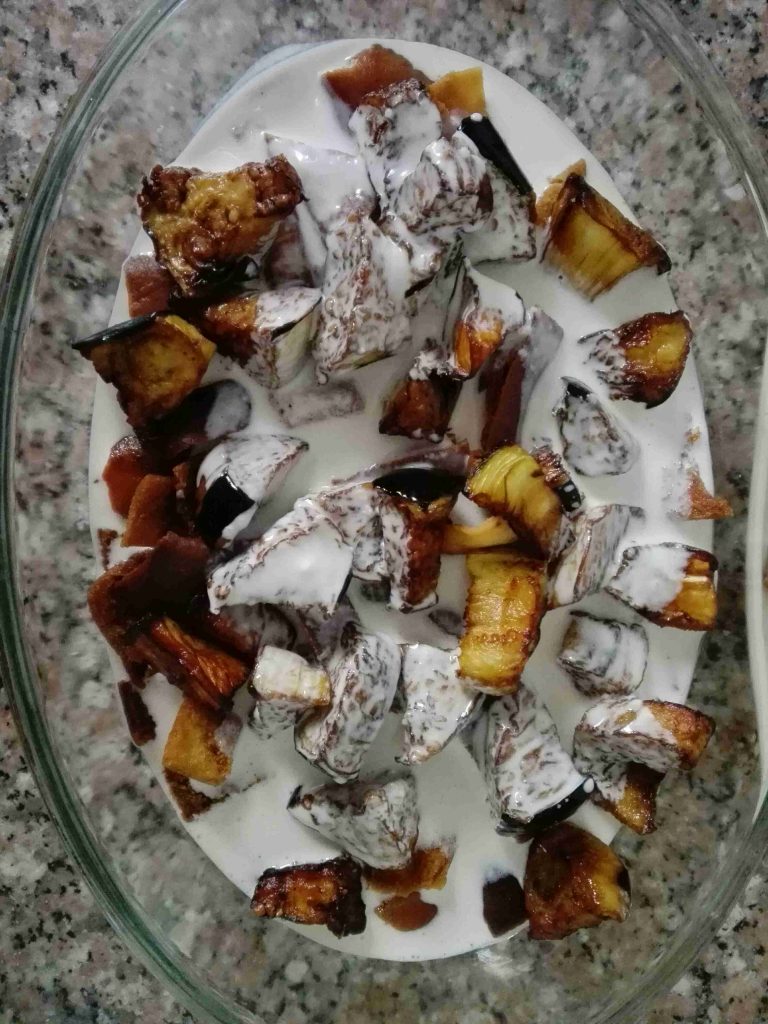 & ملاحظه …( اذا بتحبي تعمليها طبقات بتضيفي طبقة خبز وطبقة باتنجان وطبقة صوص وبتضلي تضيفي طبقات لحتى تخلصي الكميه وأ خر طبقه راح تكون الصوص ..واحتمال مع هالطريقه تحتاجي صوص أكتر وبنعمل الصوص بسهوله متل ما شرحت مسبقا )