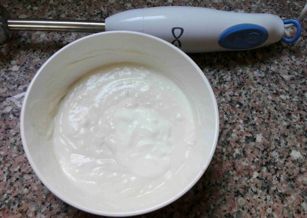 أما عالايدي أو بالبلندر… وهيك الصوص بكون عندي جاهز بضيفه فوق الخبز والباتنجان لحتى يغمرهم الصوص