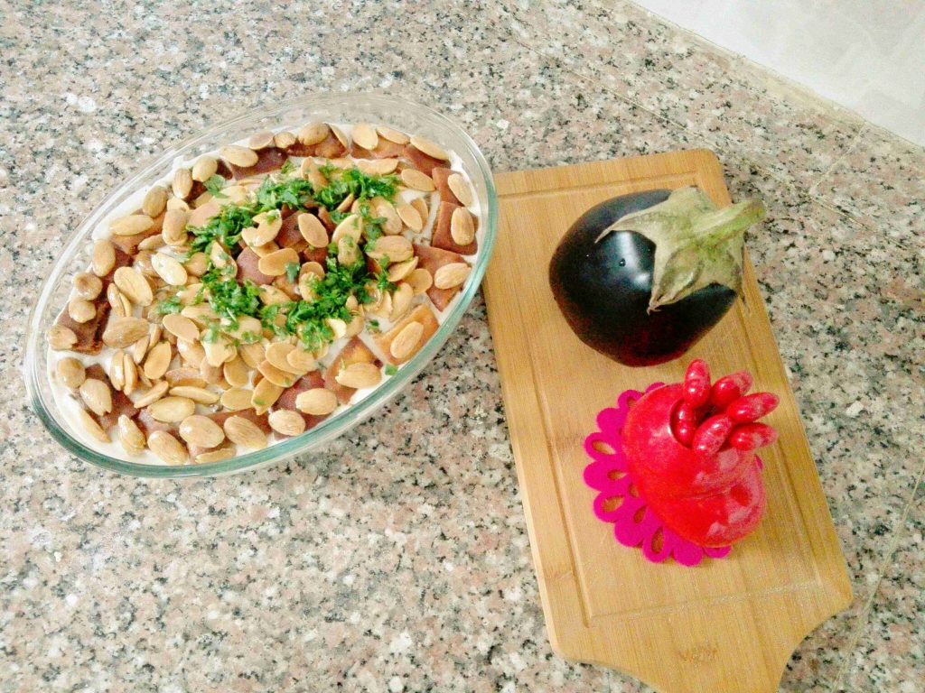 (فتة المكدوس) وهي من أشهر المقبلات اللذيذه على السفره ..وان شاء الله تنال أعجابكم وتضيفوها للمفضله