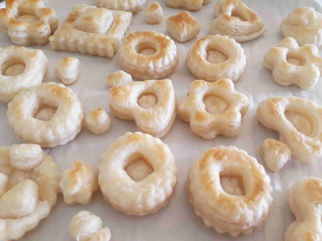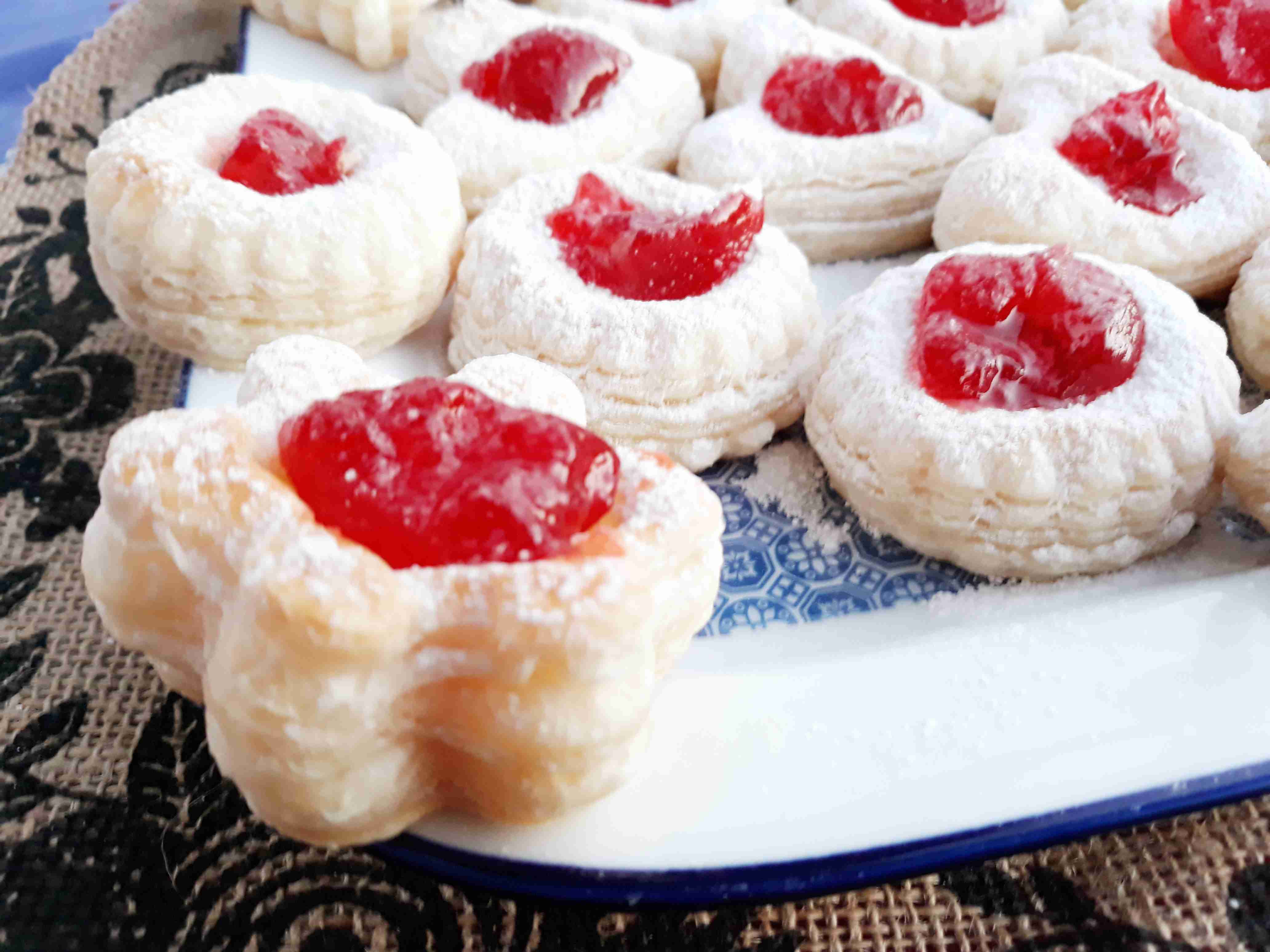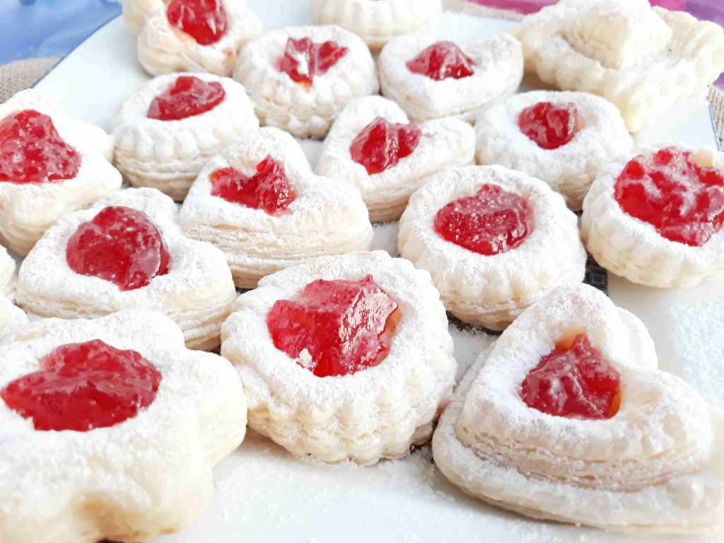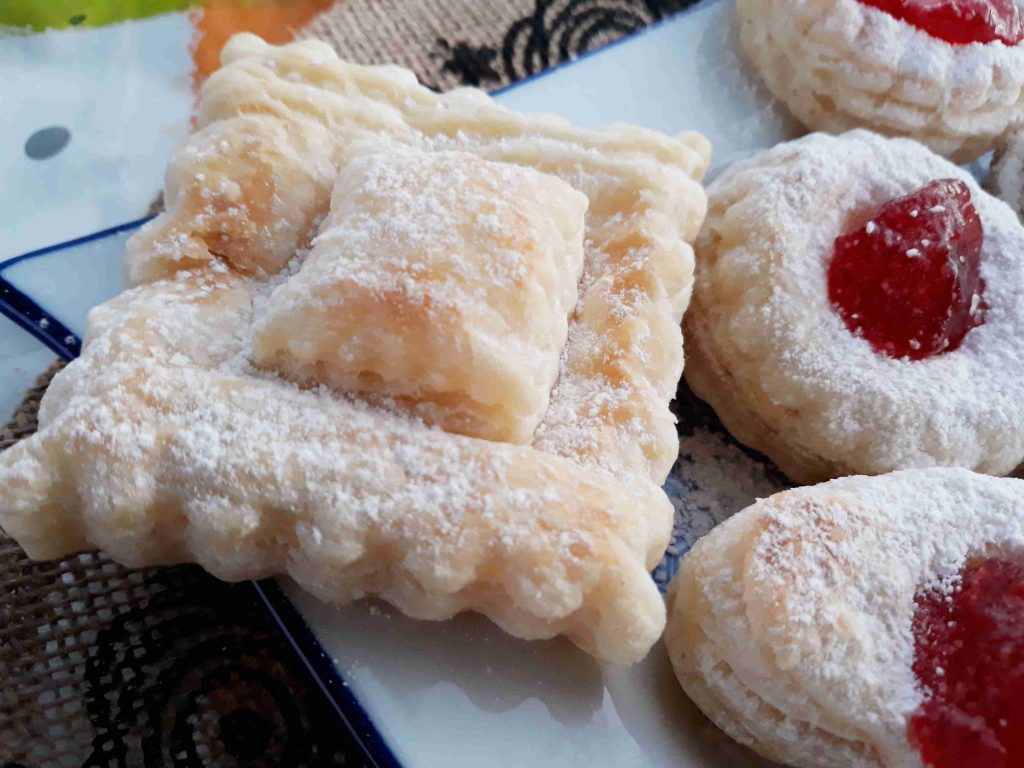 بنفرد العجينه وبنقطعها باستعمال قطاعات البسكوت وبنقطع قسم ثاني دائره من الوسط وبنضعها فوق القطعه الاولى وبنصفها على صينيه الفرن وبنخبزها على نار هاديه تقريبا 12دقيقه وبنطلعهم وبس يبردو بنعبيهم بالتطلي وبنزينهم بالسكر المطحون وتقدم والف صحه وهنا