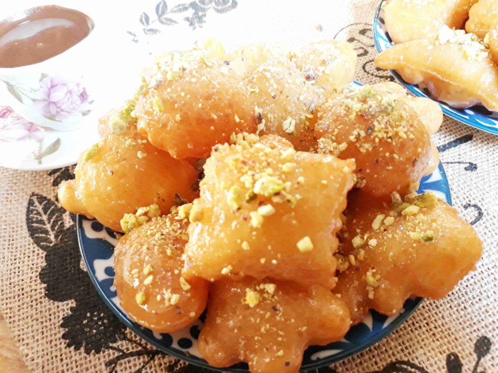 بالبدايه بنضيف الطحين والبيكنج باودر والفانيلا وبنخلطهم مع بعض بنضيف عليهم القشطه وبنعجنهم كتير منيح لما تسير عنا عجينه ناعمه وطريه وما بتلزق بنريحها ربع ساعه وبعد هيك بنبلش شغل فيها عطول بنرقها رغيف كبير وبنبلش نقطعهم بقطاعات البسكوت بالاشكال الي بدنا ياها وبنقليها بزيت غزير عنار وسط وبس تسير لونها ذهبي بنقلبها على الجهه التانيه لازم ننتبه كتير منيح عطول بنستوي وبتوخذ لون ما بتطول يادوب ثواني وبنطلعها وبنحطهم بالقطر وبنقلبهم دقيقتين ثلاث وبنطلعهم وبنقدمهم والف صحه وهنا