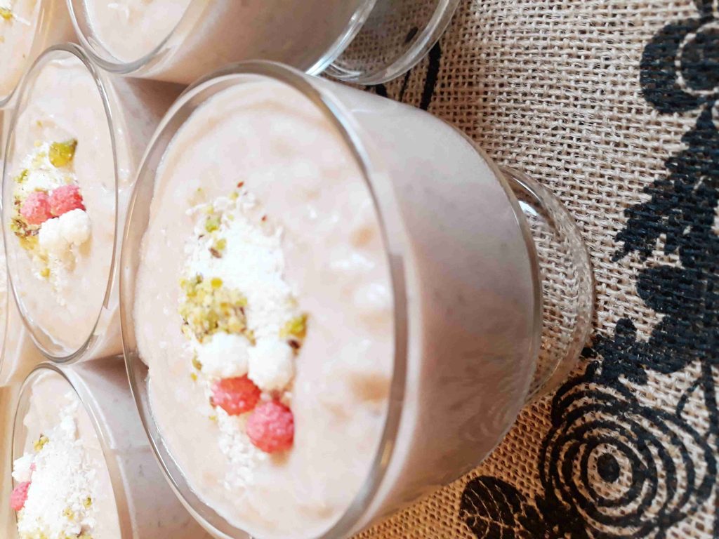 بنضع جميع المقادير مع بعض وبنخلطهم على الخلاط لما ينعم الخليط يوضع في كؤوس التقديم ويزين ويقدم والف صحه وهناا