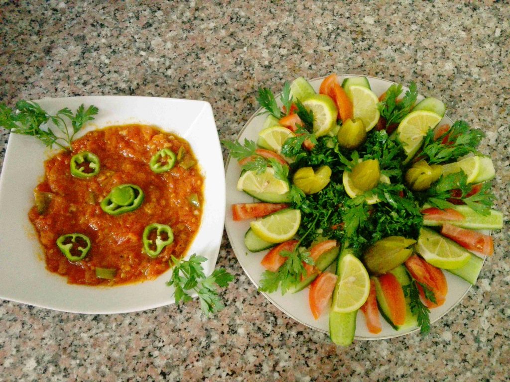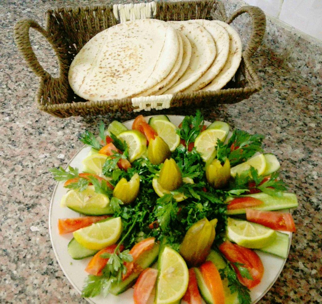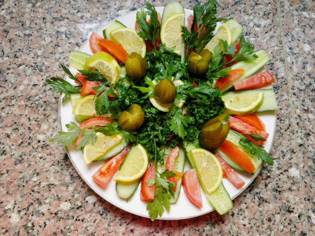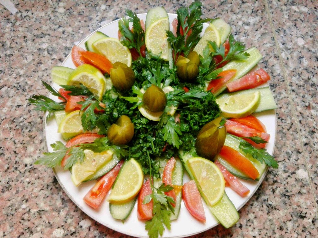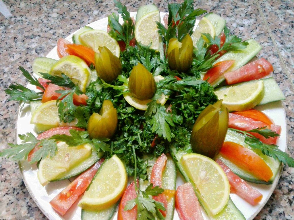 وعملت بجنبها صحن خضار مشكله منظرها جميل عالسفره