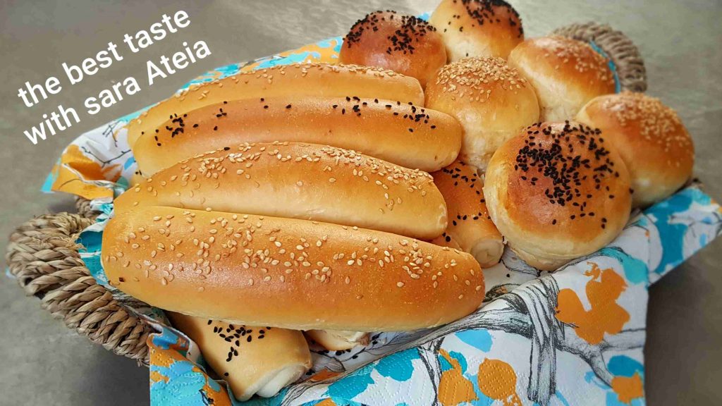 المكونات ٤كوب دقيق كيس خميره رشة ملح ٣ معالق كبار سكر ٣ معالق كبار زيت زيتون ٢ معلقة صغيره بيكنج بودر نص معلقة صغيره محسن خبز معلقة كبيره خل ماء دافئ للعجن . . . . فى طبق صغير نخلط الخميره والسكر ونص كوب من الماء الدافئ ونتركها تخمر قليلا فى بولة العجن نضع باقى المكونات ونزود ماء دافئ حتى تلم معانا العجينه نعجن فيها كويس حوالى ١٠ دقايق ونضع عليها شويه زيت ونغطيها ونتركها تخمر فى مكان دافئ . . بعد ماتخمر ننزلها على رخامه مرشوشه بالدقيق ونلفها رول ونقطعها قطع متساويه وكل قطعه نكورها بأيدينا ونضعها فى طبق ونغطيهم بفوطه وناخد قطعه قطعه نفردها على رخامه مرشوشه دقيق ونلفها رول ونخلى الأطراف لتحت وتوضع فى صينيه بها ورق زبده ونغطيها تخمر تانى . . . بعد ماتخمر نجهز خليط لدهن وش العيش عباره عن معلقه لبن بودر ونص معلقه نيسكافيه ونص كوب لبن نقلبهم وندهن بيهم العيش ونرش عليه سمسم وحبة البركه او ساده عادى ويدخل الفرن عل علي ١٨٠ لحد اللون الحلو للعيش . . . والكاب كايزر نفس العجينه بس الكور مش بفردها بحطها زى ماهى فى قوالب الكب كيك وبعملها نفس خطوات التخمير ودهن الوش والتسويه ولما يخرجوا من الفرن نرش عليهم ببخاخ الميا شويه ونغطيهم خمس دقايق ويقدم بالهنا والشفا